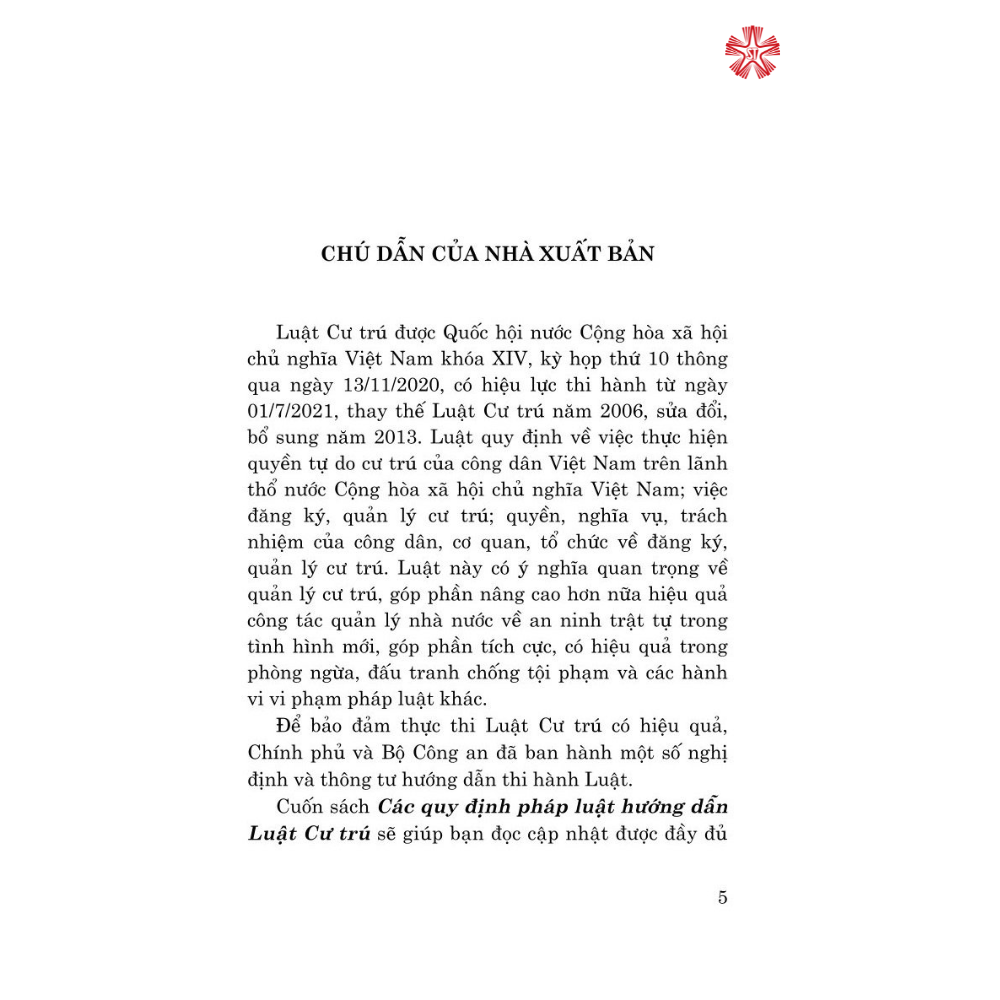 Cuốn sách “Các quy định hướng dẫn Luật Cư trú” là một tài liệu quan trọng, cung cấp thông tin chi tiết và hướng dẫn cụ thể về các điều luật liên quan đến cư