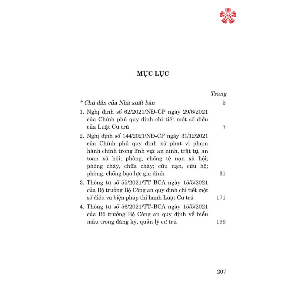 Cuốn sách “Các quy định hướng dẫn Luật Cư trú” là một tài liệu quan trọng, cung cấp thông tin chi tiết và hướng dẫn cụ thể về các điều luật liên quan đến cư trú tại Việt Nam. Nội dung của sách bao gồm:
