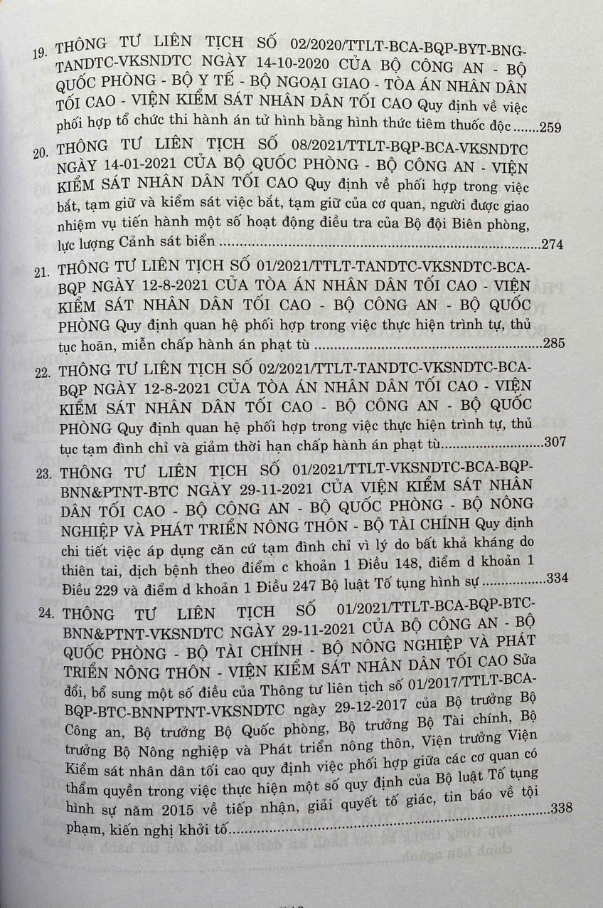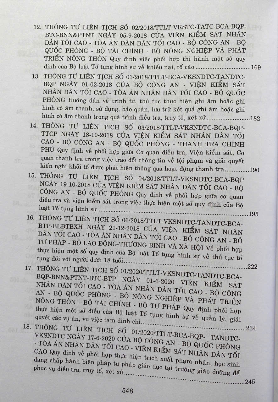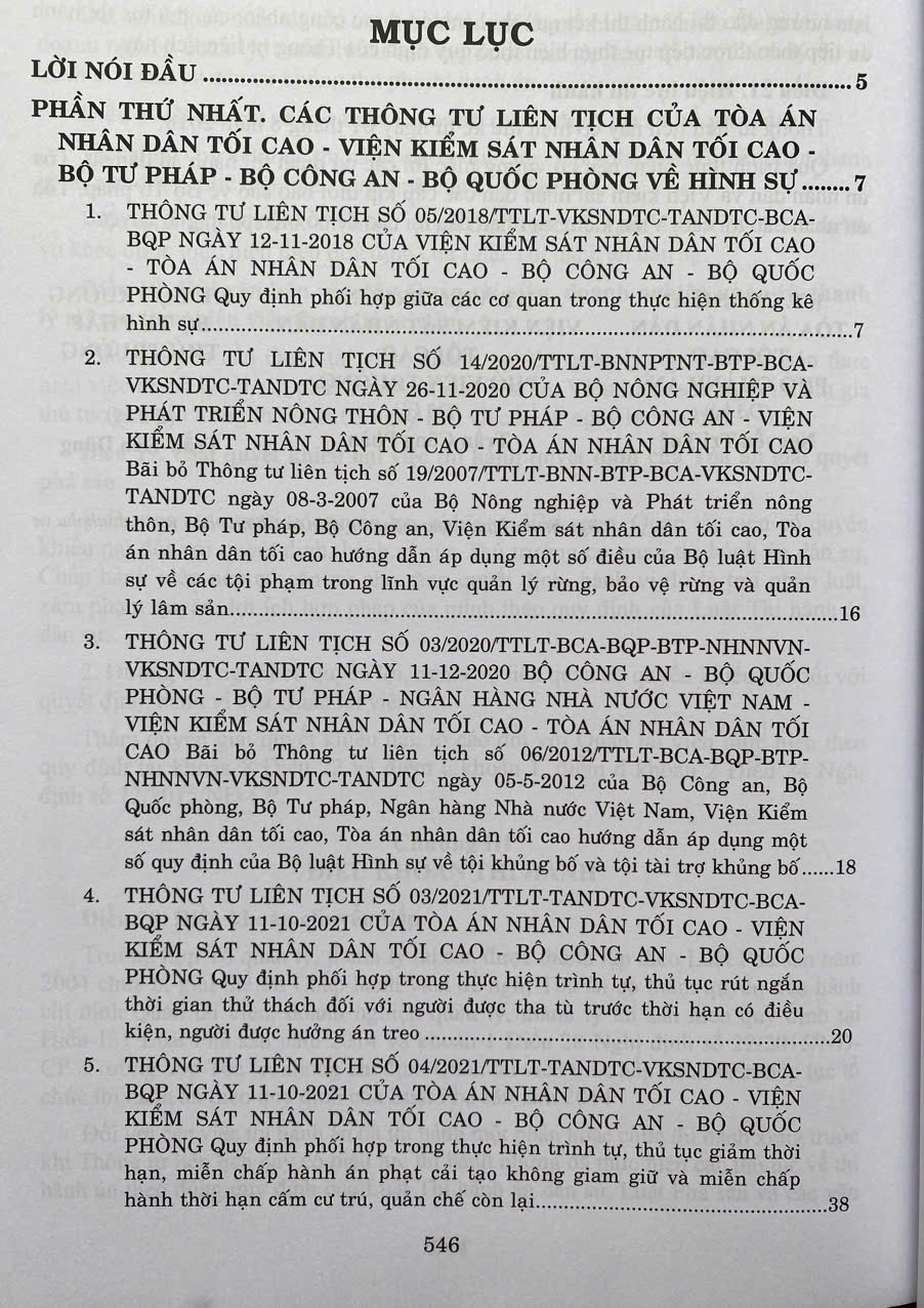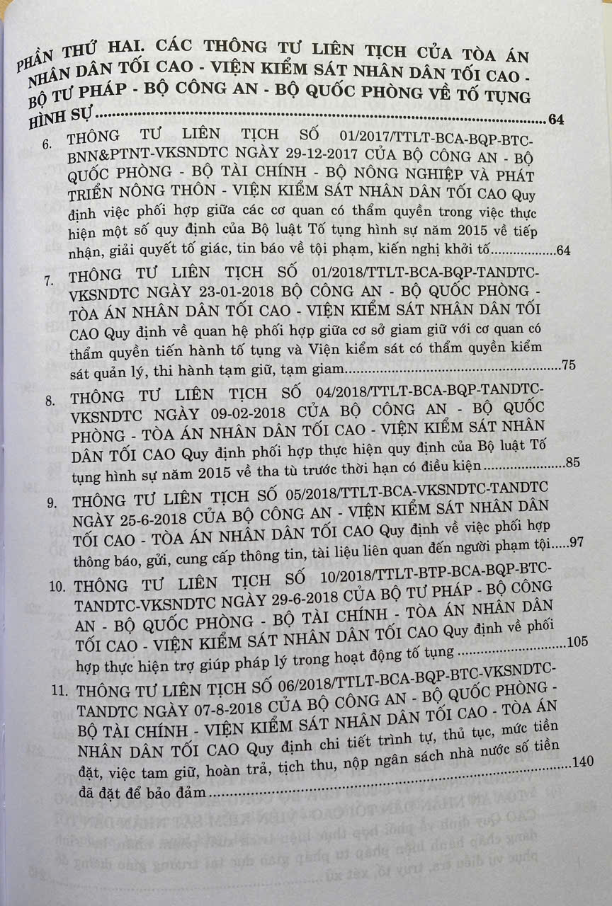 Phần I: Các Thông tư liên tịch của Tòa án nhân dân tối cao - Viện Kiểm sát nhân dân tối cao - Bộ Tư pháp - Bộ Công an - Bộ Quốc phòng về hình sự.