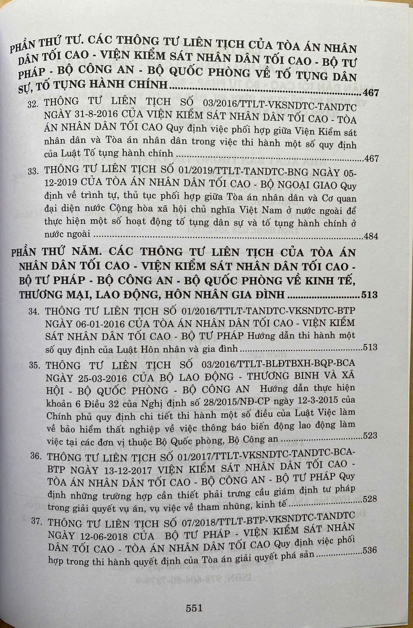 Phần IV: Các Thông tư liên tịch của Tòa án nhân dân tối cao - Viện Kiểm sát nhân dân tối cao - Bộ Tư pháp - Bộ Công an - Bộ Quốc phòng về tố tụng dân sự, tố tụng hành chính.