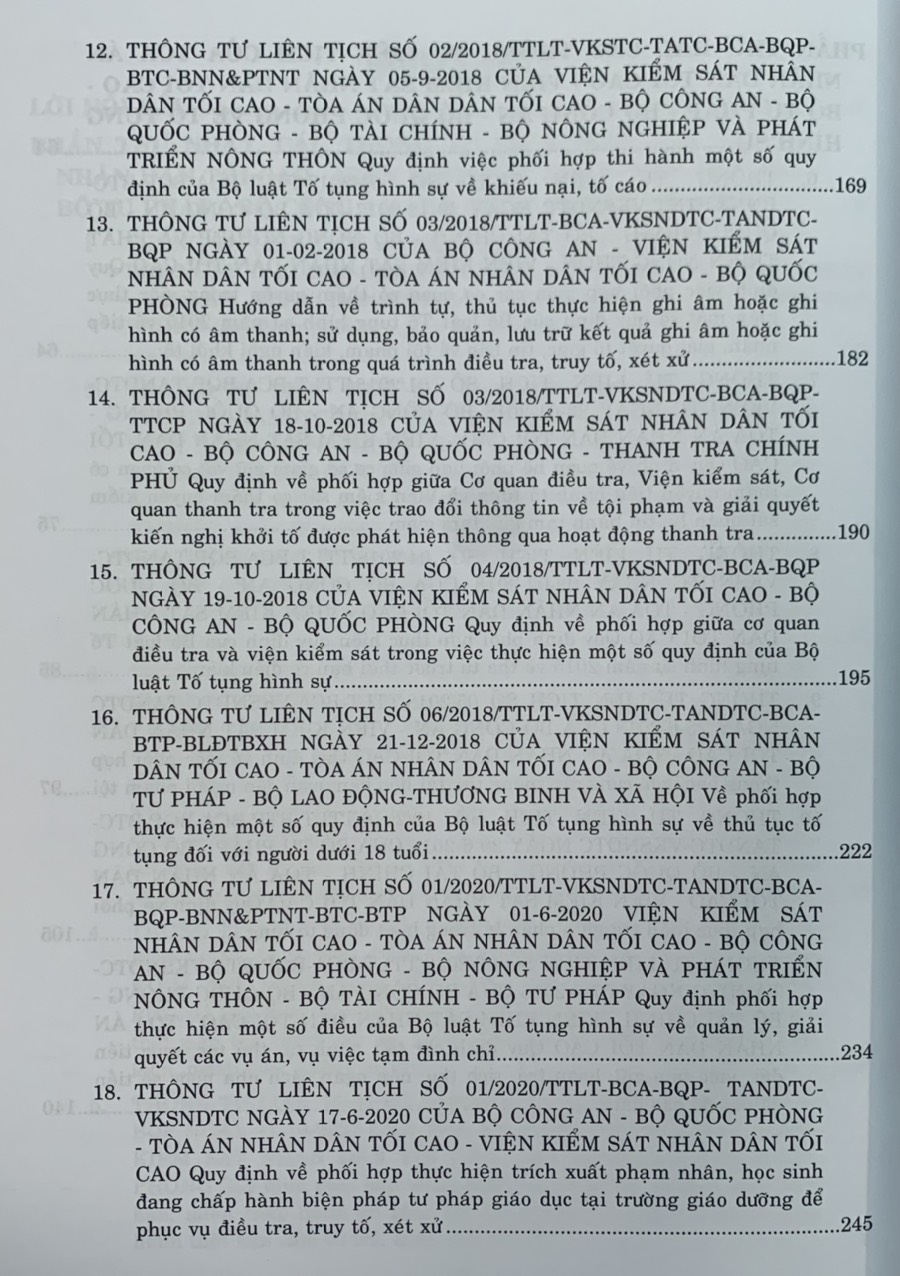 Phần thứ hai: Các Thông tư liên tịch của Tòa án nhân dân tối cao - Viện Kiểm sát nhân dân tối cao - Bộ Tư pháp - Bộ Công an - Bộ Quốc phòng về tố tụng hình sự