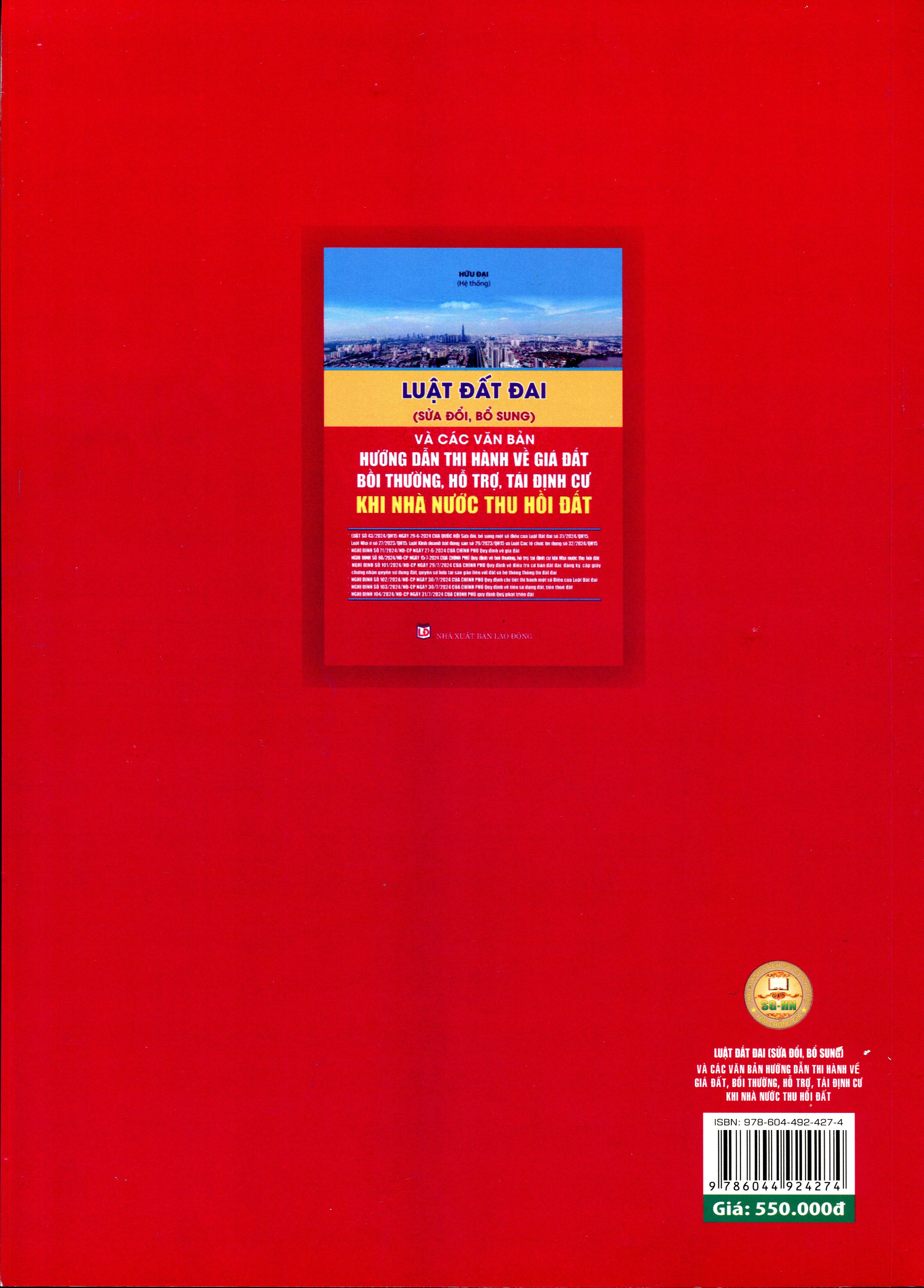 Luật Đất Đai Và Các Văn Bản Hướng Dẫn Mới Nhất - Nhà Phát Hành: Pháp Luật Sài Gòn - Hà Nội - Thương hiệu: Hữu Đại - ISBN: 978-604-492-427-4 - Khổ sách: 20 x