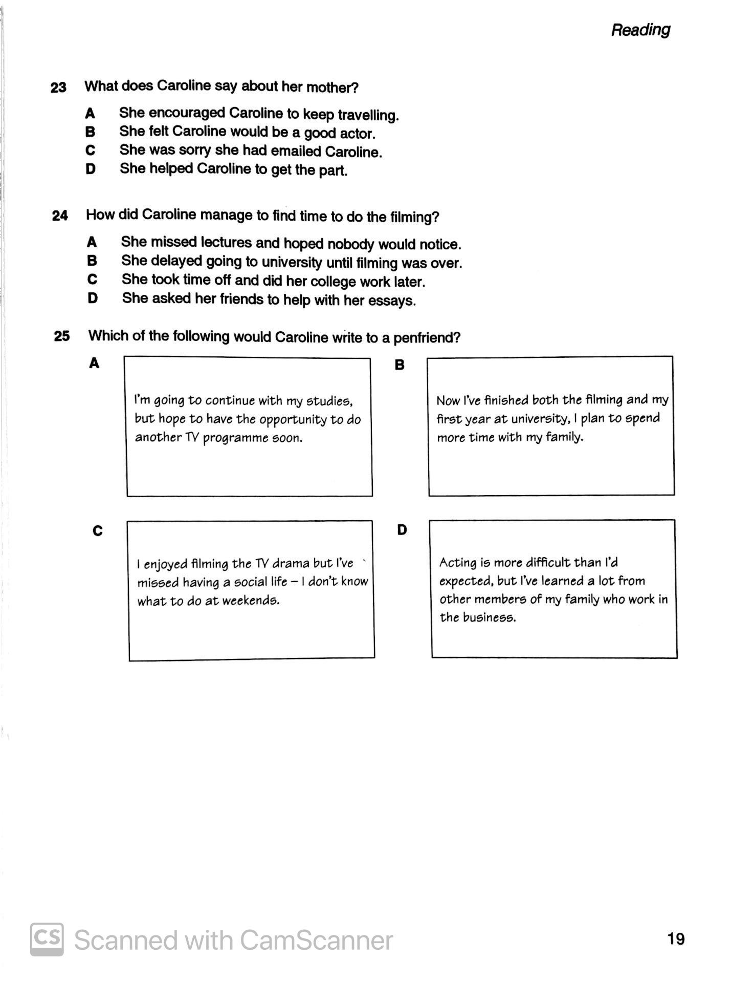 B1 Preliminary (PET) Listening Test 19 with answers (new format)