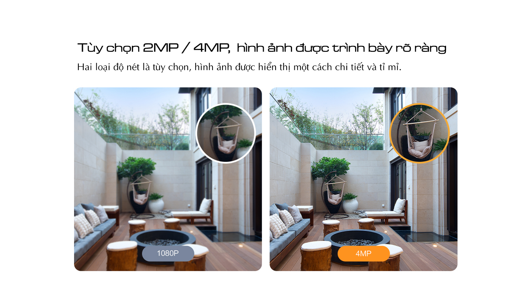 - Độ phân giải 2K 4MP – Hình ảnh siêu nét, chi tiết gấp 2 lần Full HD - Xoay ngang 360°, dọc 149° – Quan sát toàn diện không góc khuất - AI nhận