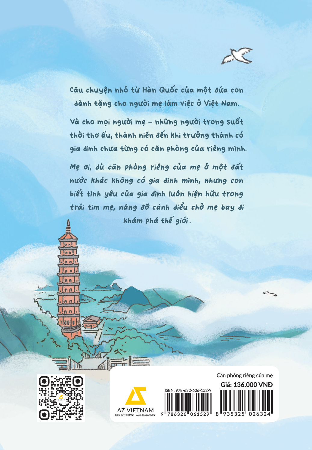 “Căn phòng riêng của mẹ” là cuốn sách tranh kể về một hành trình đầy cảm xúc của người mẹ tuổi 50 đã dám bước ra khỏi vùng an toàn, để bay từ Hàn Quốc đến Việt Nam làm việc. Dù phải rời xa gia đình và cuộc sống thân quen, trải qua nhiều băn khoăn lo lắng, nhưng chính sự thay đổi ấy đã mang đến cho mẹ một căn phòng riêng, một thế giới mới, nơi mẹ có thể theo đuổi cuộc sống mình mong ước.