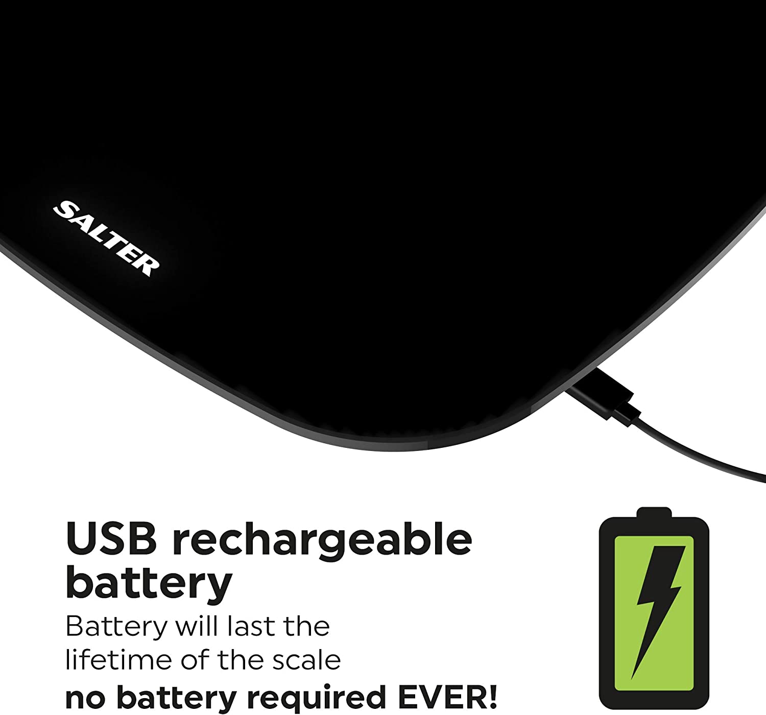 Salter 9221BK3R là một chiếc cân sức khỏe tích hợp công nghệ pin sạc nhằm hạn chế tối đa những rắc rối do sử dụng pin một lần như phải thường xuyên thay pin hay các hỏng hóc gặp phải do pin sử dụng một lần bị chảy nước. Chỉ với một lần sạc khoảng 3 tiếng đồng hồ cho thời gian sử dụng lên tới 3 tháng.