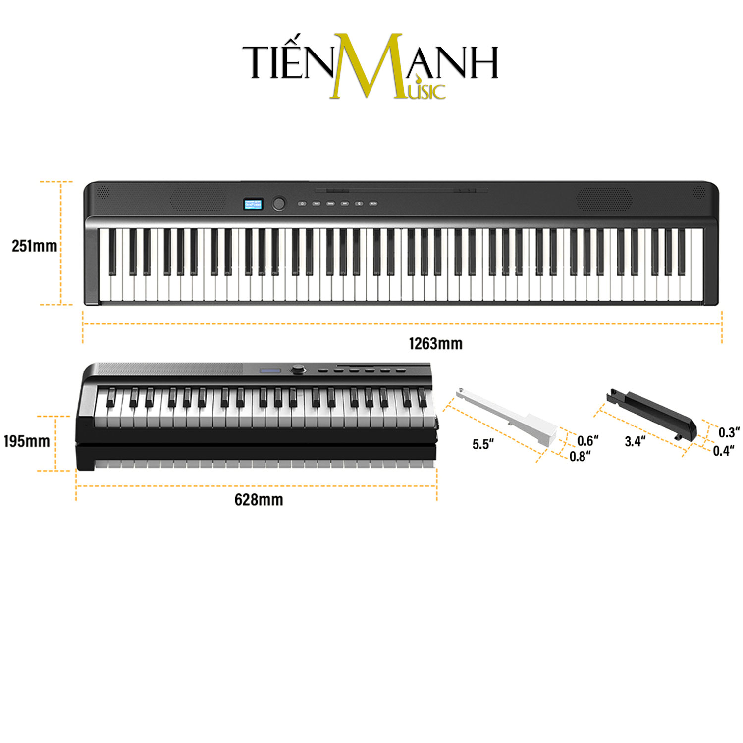 - Thiết kế thon gọn với bề dày chỉ 232 mm: Phù hợp với nhiều không gian kể cả không gian chật hẹp, thuận tiện cho việc di chuyển, biểu diễn - 88 phím đàn