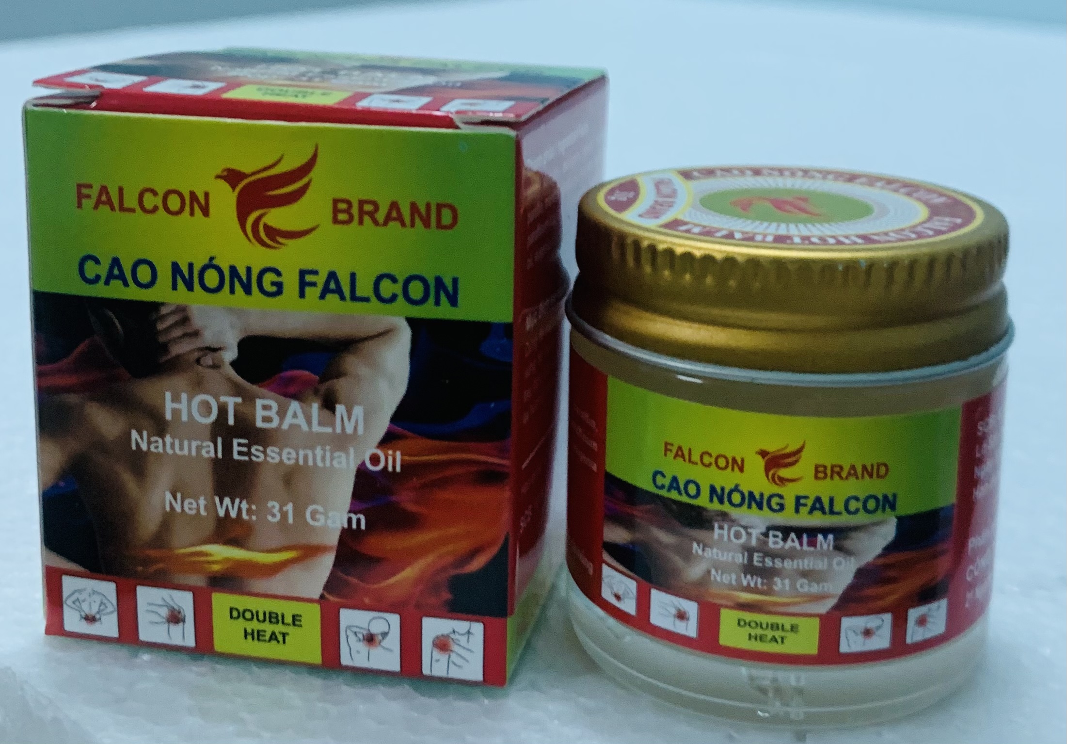 Dầu nóng Falcon được sản xuất tại Công ty Dược phẩm lớn, được Bộ YT cấp phép lưu hành. - Dùng để xoa bóp khi đau nhứt xương khớp. - Masage toàn thân khi mệt