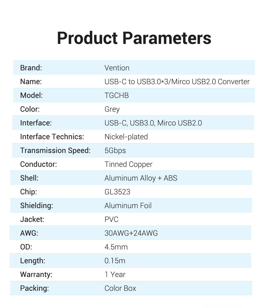 Tín hiệu đầu vào USB Type C Tín hiệu đầu ra HDMI/ USB 3.0 x 3/ Type-C PD Độ dài cáp 15cm Độ phân giải Hỗ trợ full HD, 2k, 4k Hỗ trợ Windows 7/8/10, Macbook, Mobile...
