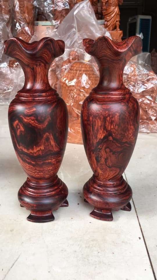 ✨Cặp lộc bình bằng gỗ trắc kt cao 60×20cm