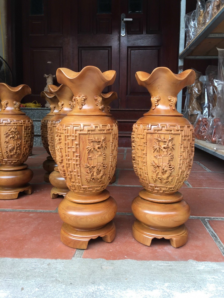 Cặp Bình Gỗ nu gõ hay gõ vẽ nu cao tròn đều đẹp cao 60cm x đk 20cm ý nghĩa bình an , phú quý Anh Chị trưng phòng khách nhà, công ty, bàn thờ