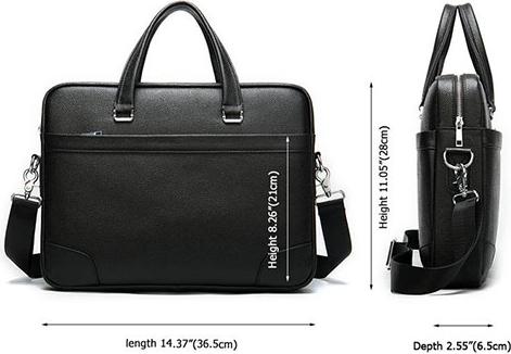 Cặp có kích thước dài 36.5 cm, cao 28cm giúp bạn để vừa laptop đến 14inch, tài liệu hợp đồng quan trọng, phụ kiện cá nhâ