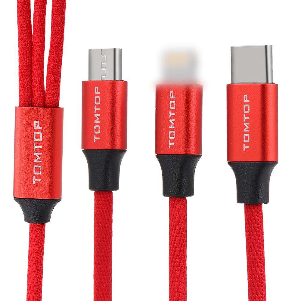 ✨Cáp sạc đa năng TOMTOP 3.9FT Dây sạc USB Dây đồng bộ hóa dữ liệu 3 trong 1 iOS 8 chân đực + Loại C + Đầu nối Micro USB