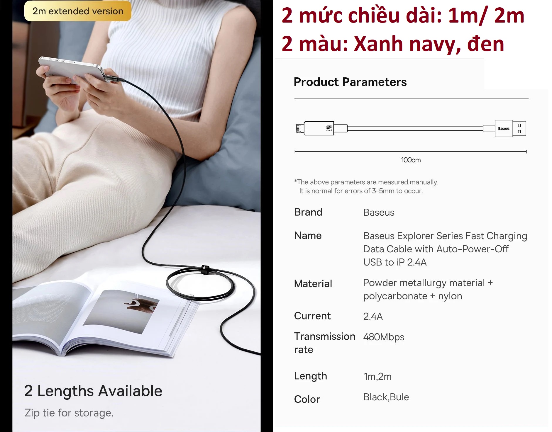 - Baseus Explorer Series Auto Power-off là thế hệ cáp sạc tự ngắt thứ 2 mang đến nhiều cải tiến và nâng cấp đáng giá về thiết kế, vật liệu củng như tính năng và