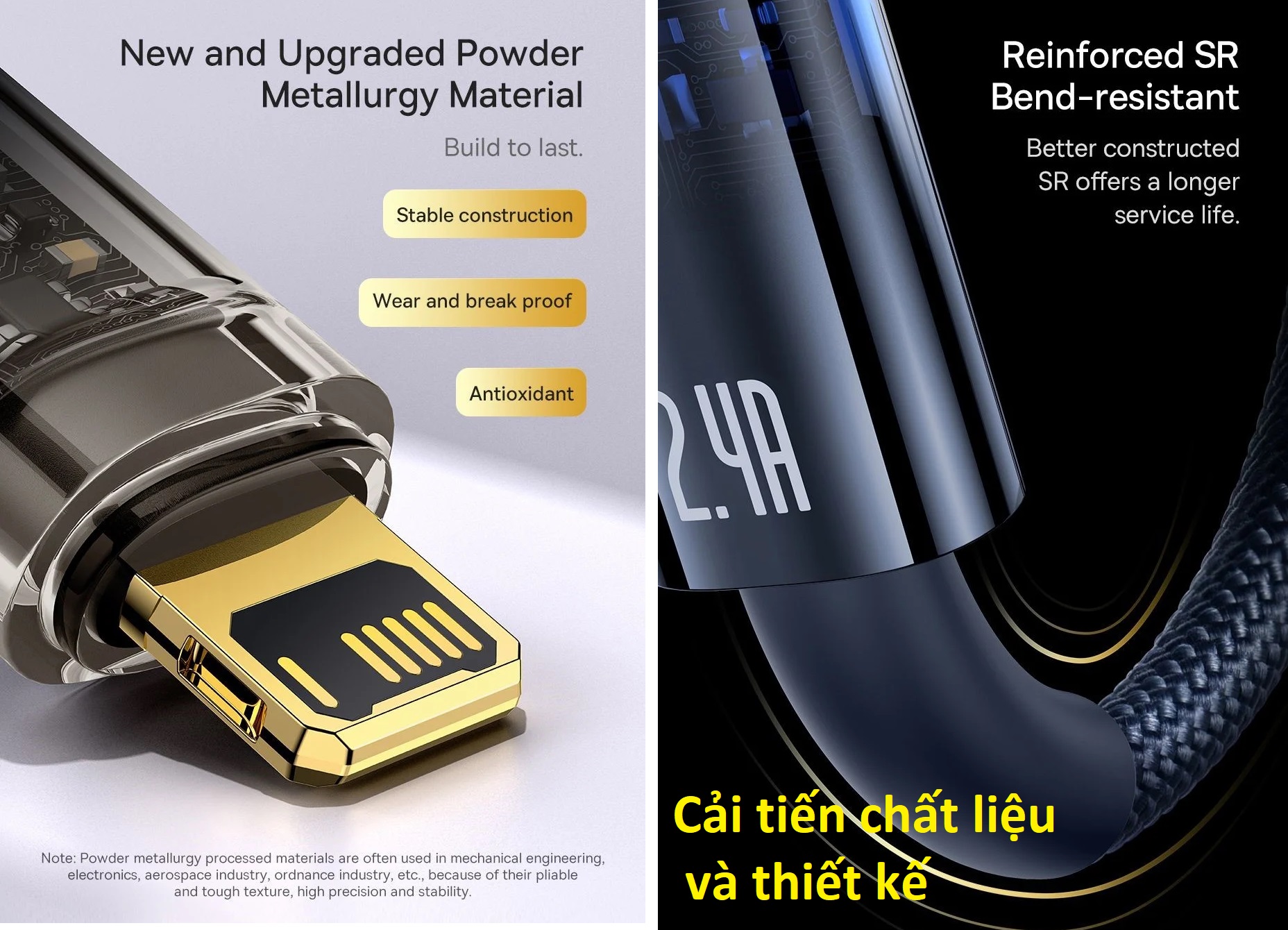 - Đây là phiên bản được Baseus nâng cấp đáng kể chất liệu và độ hoàn thiện, kiểu dáng thiết kế. Sản phẩm với đầu cáp được làm hoàn toàn bằng hợp kim nhôm cao