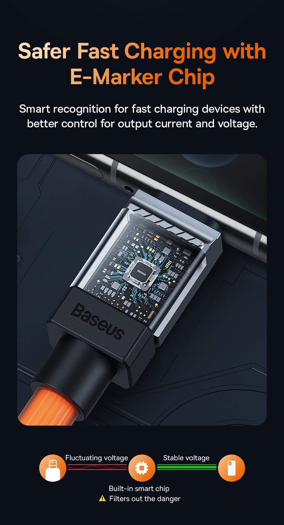 Cáp sạc nhanh, truyền dữ liệu PD 100W, Ba-se-us CoolPlay Series Fast Charging Data Cable
