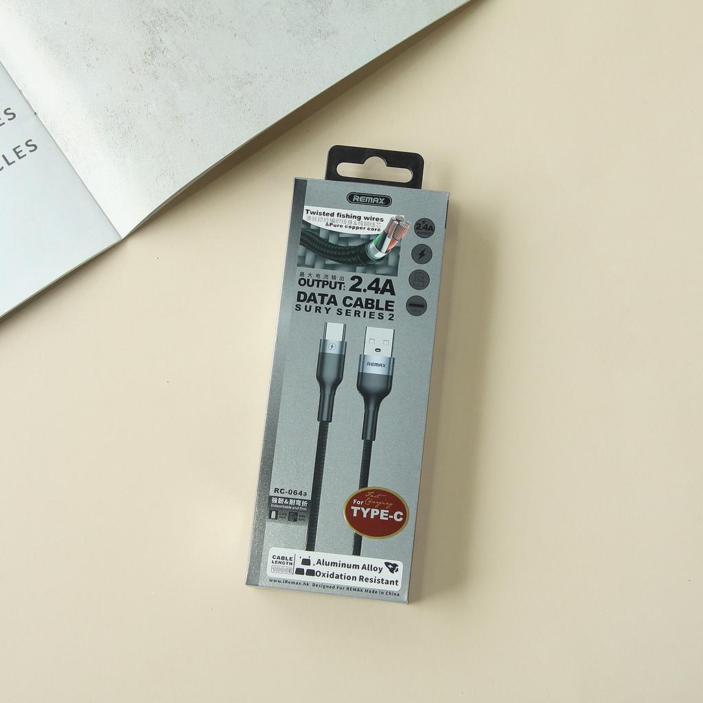 Tên sản phẩm: Cáp sạc nhanh truyền dữ liệu Type-C Chính Hãng Remax 064a dây sạc nhanh 2.4A Max Chống gập chống gãy Siêu Bền