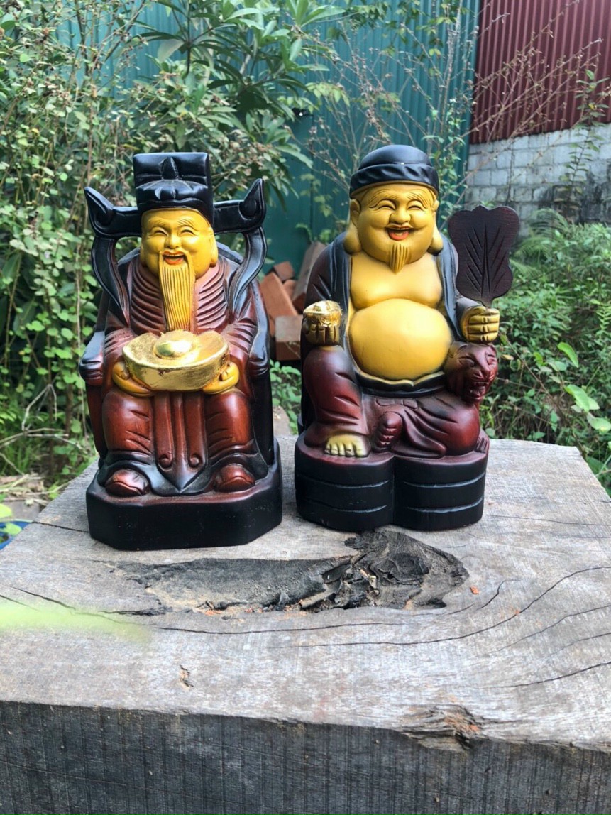 Mua tại Tiktok,Cặp tượng phật ông thần tài thổ địa được làm bằng chất liệu gỗ hương đá tự nhiên 100% Và được sơn pu tô làm mầu giả cổ Kích thước cao 30×15×14cm _ Cặp thần tài ông thổ địa được trạm khắc tỉ mỉ tinh sảo kỳ công .Tượng phật được làm và hoàn thiện do bàn tay khối óc tài hoa ,Từ những người thợ dầy rặn kinh nghiệm cũng như tay nghề cao trong làng nghề truyền thống .