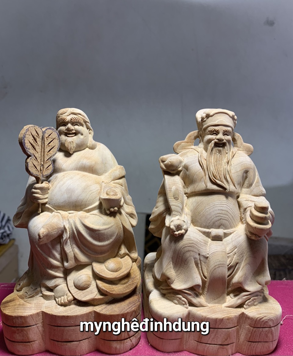 Mua tại TiktokCặp ông thần tài và ông thổ địa được làm bằng chất liệu gỗ ngọc am liền khối tự nhiên 100% kt cao 15x9x9cm _ Tượng được chạm khắc gọt tỉa vô cùng tỉ mỉ tinh xảo kỳ công. Đi hầu hết tất mọi chi tiết góc ngách nội dung hoa văn của tượng đều được gọt tỉa chỉnh sửa sắc nét hoàn toàn bằng tay thủ công truyền thống.