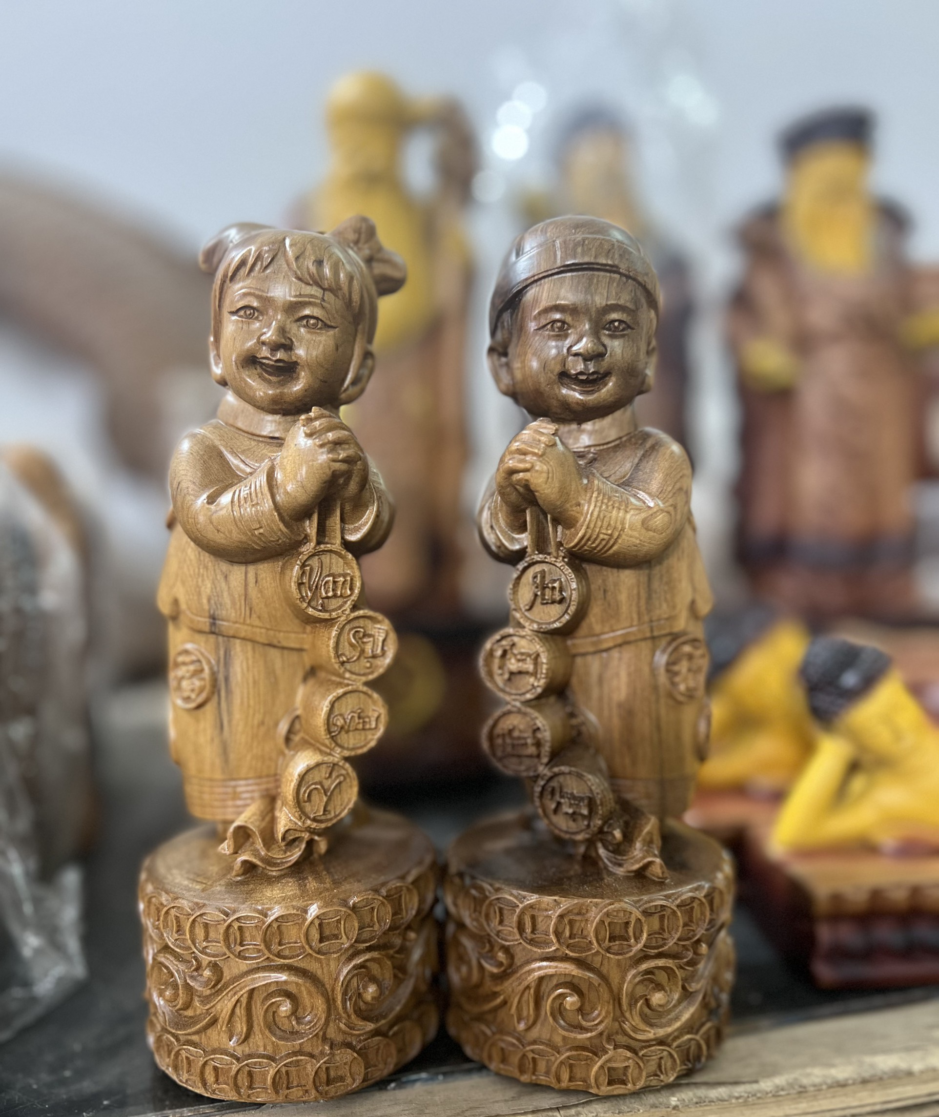 ✨Cặp tiểu đồng chúc phúc bằng gỗ bách xanh thơm nức cao 20x8x8cm