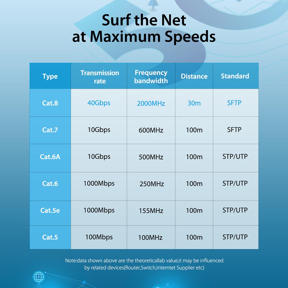The cable provides 40Gbps transmission rate and 2000MHz frequency bandwidth,ensures stable gaming and fast download speed, brings happiness to your life.