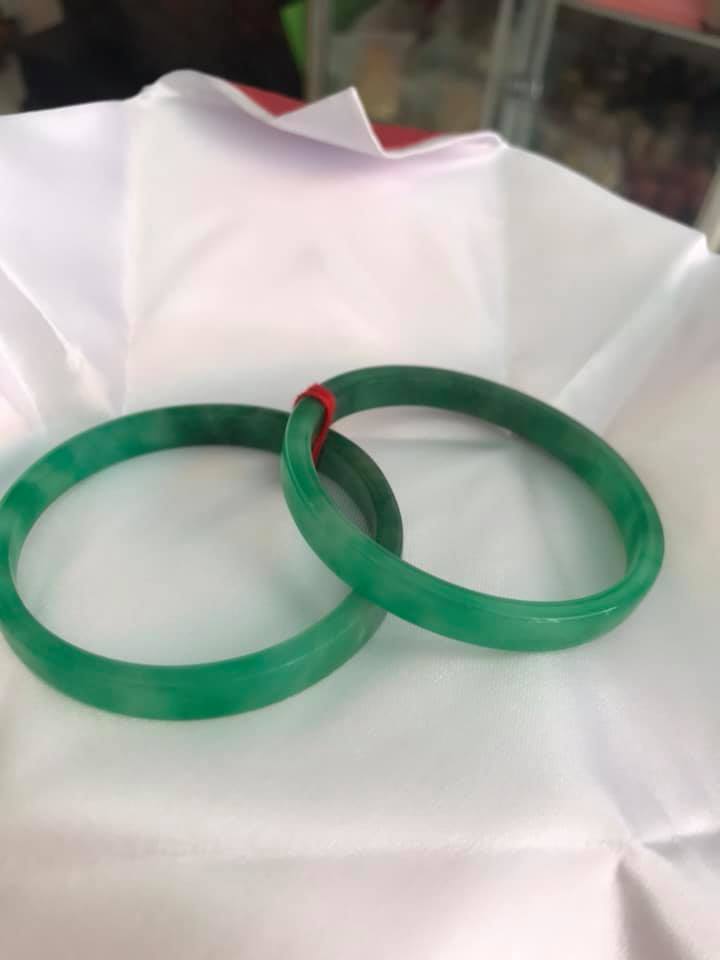 Vòng cẩm thạch Đ Lý 52mm x dầy 7,8mm màu xanh lá tươi hợp Nữ mệnh Mộc mệnh Hỏa 52kg - 56kg đeo ạ