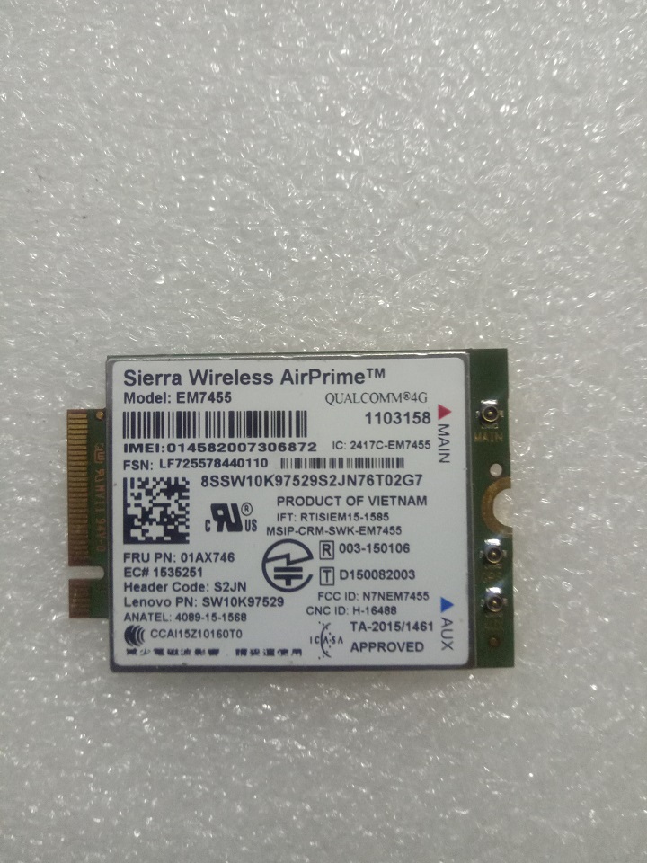 Card WWAN 4G Lenovo ThinkPad EM7455 4G LTE dùng cho laptop Lenovo Thinkpad L470, L570, P51, P70,P71,T470,T470p,T570,X270 - Hàng chính hãng Card wwan 4G Lenovo ThinkPad EM7455 4G LTE Mobile Broadband (FRU PN: 01AX746) -