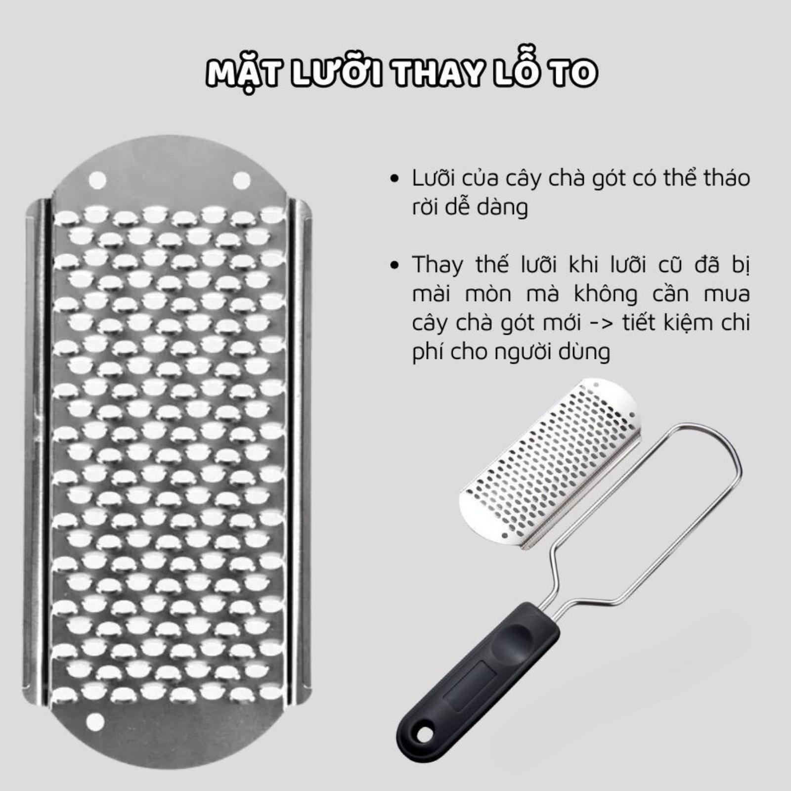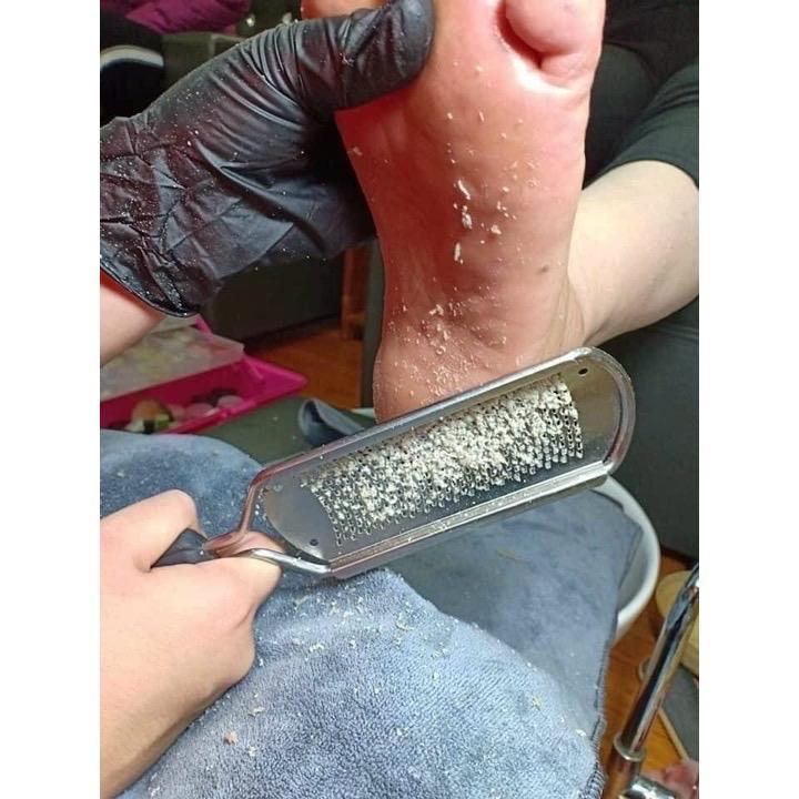 - Cây chà gót chân inox là là dụng cụ không thể thiếu giúp loại bỏ phần da chết một cách nhanh chóng