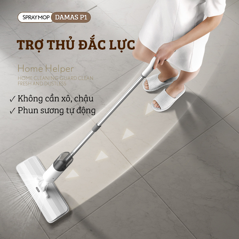 ✨Cây Lau Nhà Phun Sương, Chổi Lau Nhà 360° Lau Sạch Khô Nhanh Cao Cấp Damas P1 Pro - Bản Lau To Giúp Lau Sạch Nhanh Chóng, Khớp Xoay 180 Độ Linh Hoạt - Thiết Kế Mới Tích Hợp Bình Chứa Dung Dịch Với Tốc Độ Phun Sương 0.1s - Hàng Chính Hãng
