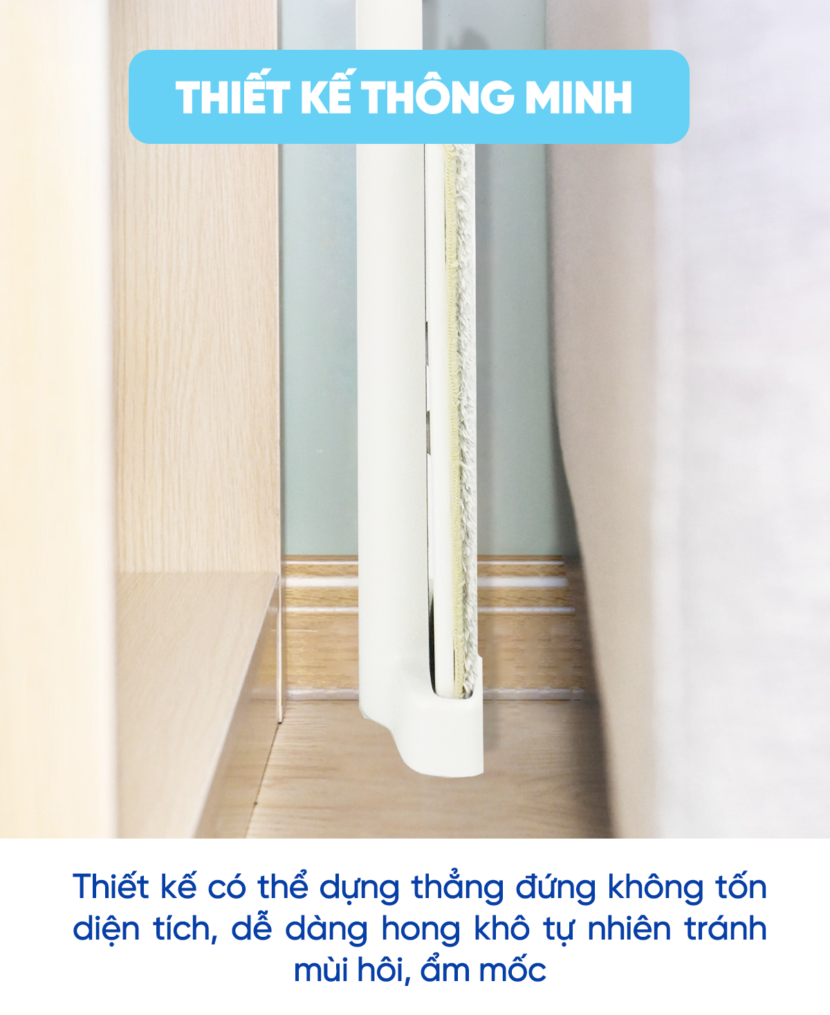 - Thiết kế gọn nhẹ, thoải mái khi di chuyển mà không tốn sức - Mâm lau hình chữ nhật, diện tích rộng giúp làm sạch nhanh chóng - Mặt lau làm bằng sợi dệt