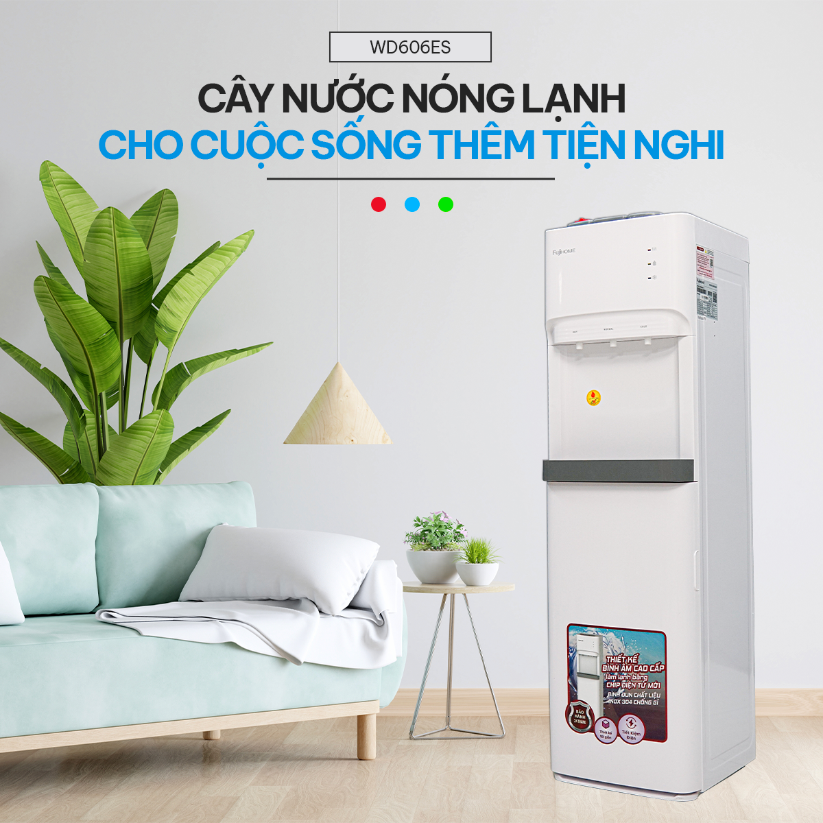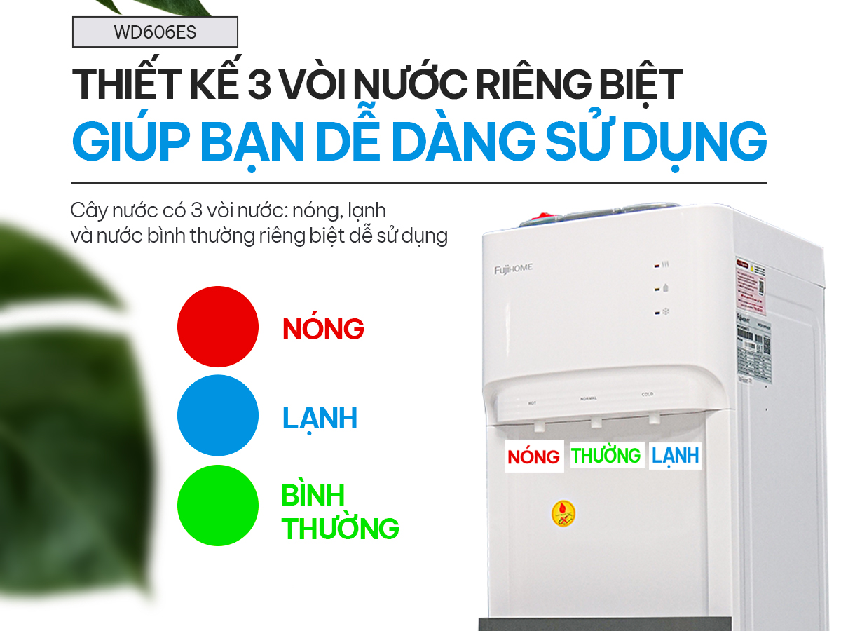 CÂY NƯỚC NÓNG LẠNH BÌNH ÂM CAO CẤP FUJIHOME WD606ES >>> HÀNG CHÍNH HÃNG - BẢO HÀNH 2 NĂM TOÀN QUỐC <<< 3 VÒI NÓNG-LẠNH-THƯỜNG TIỆN LỢI THEO NHU CẦU BÌNH NƯỚC ÂM