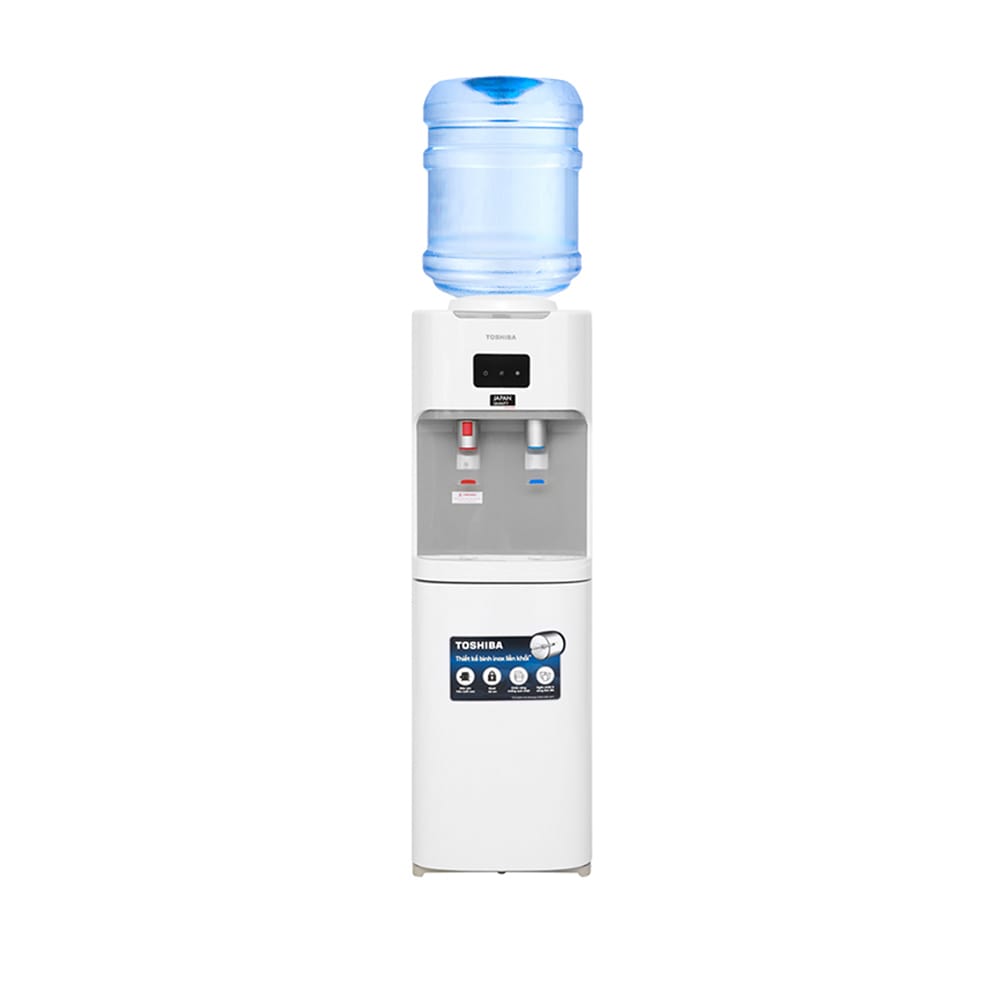 Cây nước nóng lạnh Toshiba có kết cấu vững chắc, thiết kế hiện đại, màu trắng tươi sáng, tạo điểm nhấn cho không gian sử dụng thêm sang trọng Thích hợp lắp đặt và sử dụng