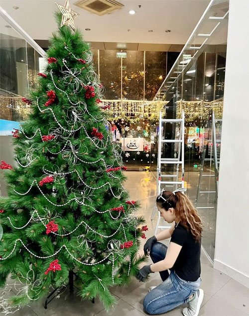 Với cây thông đẹp như vậy quý khách Chỉ cần thêm 1 hộp châu (quả cầu) khoảng 30 chi tiết, thêm ít bộ đèn nháy là có một cây thông lung linh, cho không khí Giáng Sinh tràn ngập ngôi nhà