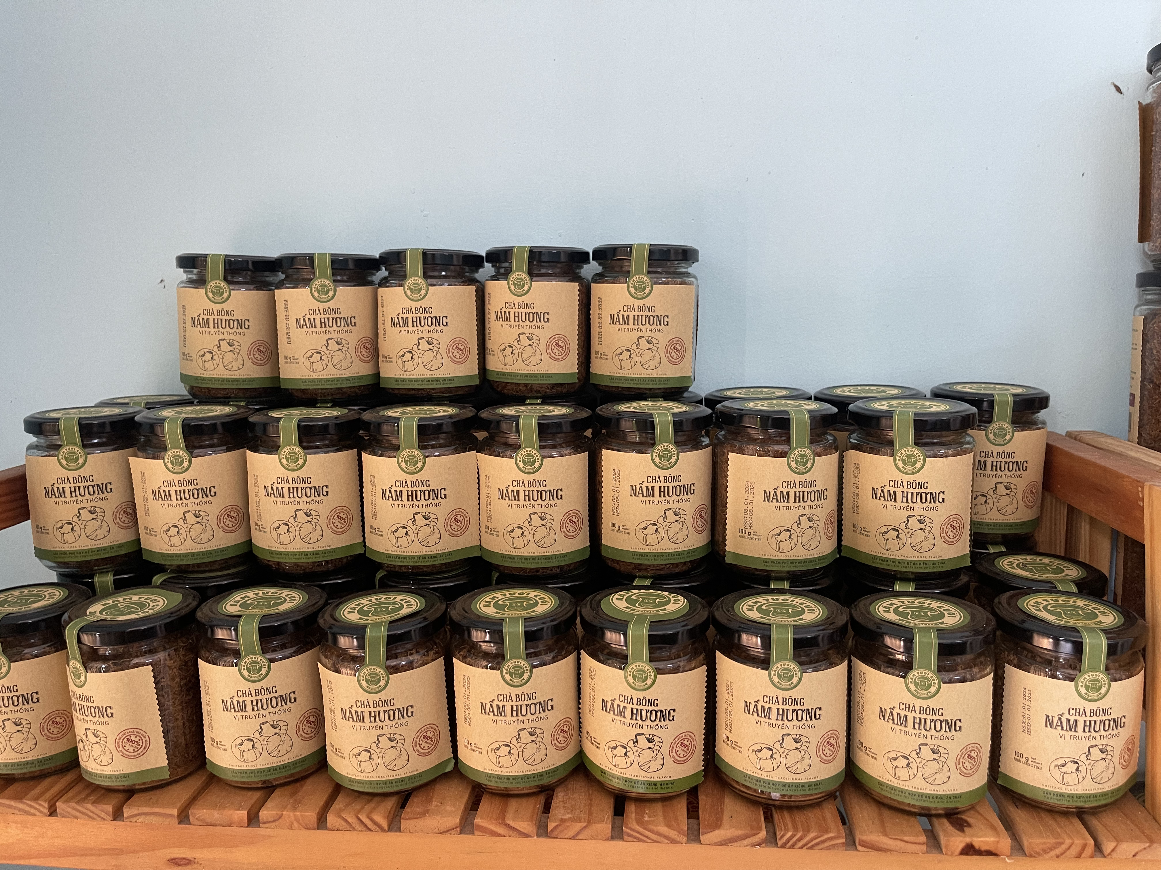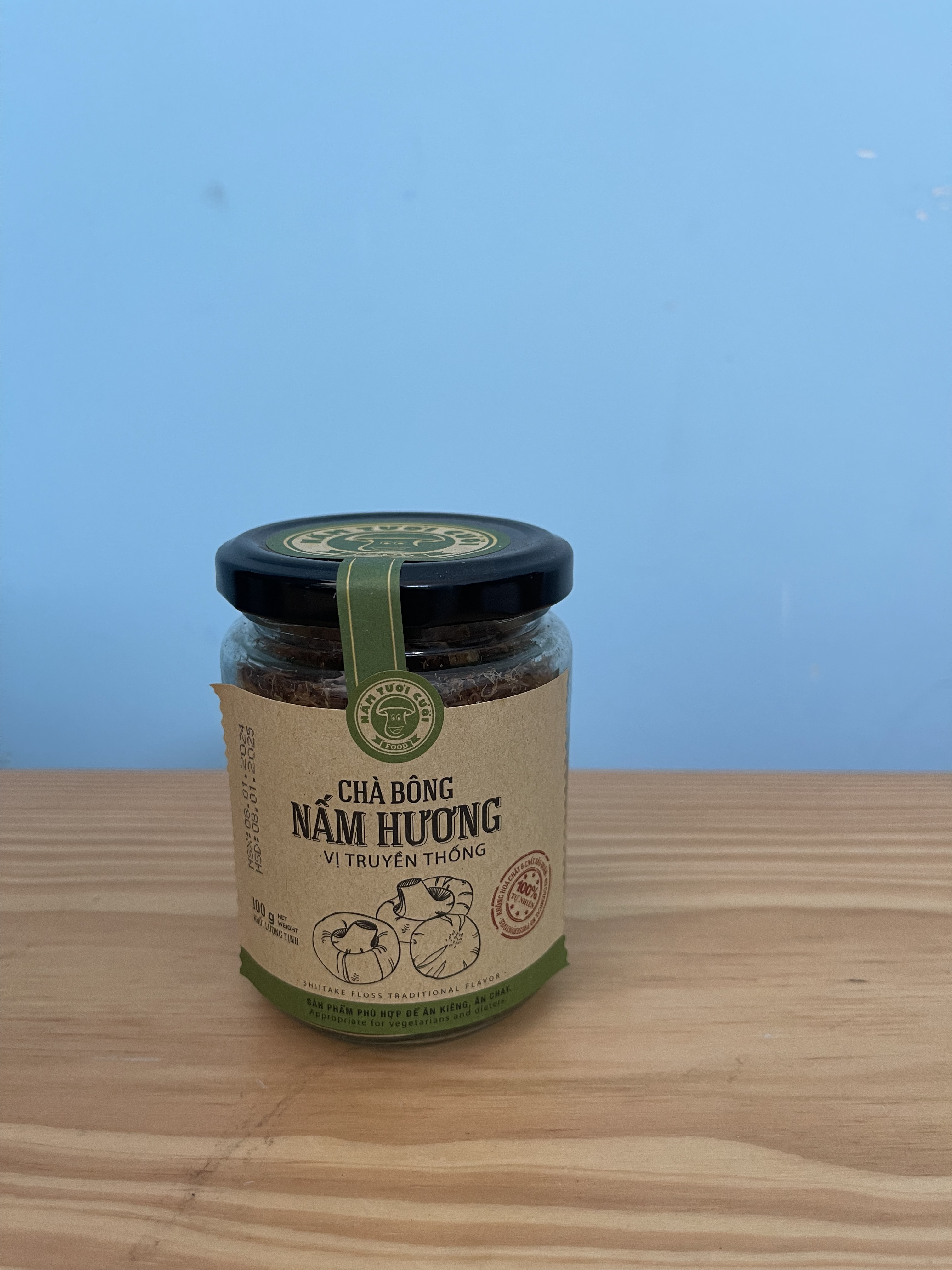 Chà bông nấm vị truyền thống hũ 100gram không chất phụ gia và chất bảo quản nên giữ được hương vị tươi ngon của nấm, an toàn đối với sức khỏe người tiêu dùng. Quy trình sản xuất đảm bảo vệ sinh an toàn thực phẩm, đóng gói cẩn thận