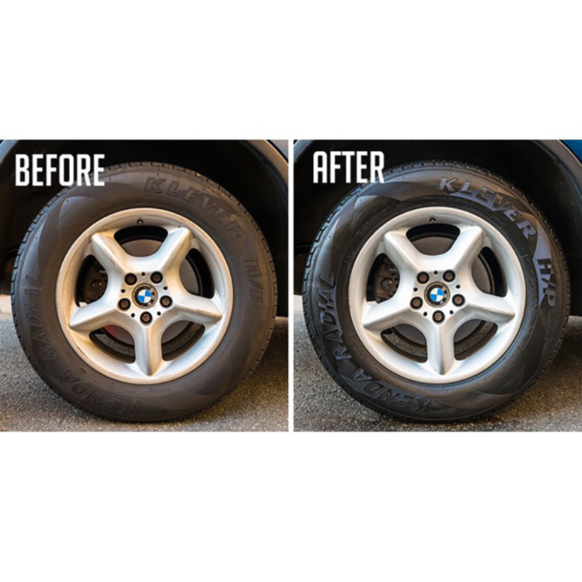 - Tẩy sạch và tái tạo bề mặt cao su của lốp xe; mang lại độ bóng tự nhiên ban đầu.