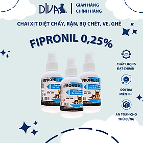 Mua tại TiktokDiệt chấy, rận, bọ chét, ve, ghẻ - Mạnh mẽ - An Toàn - Đặc biệt hiệu quả Quy cách: 100ml Dạng bào chế: Dung dịch dùng ngoài Công dụng: Fipronil 0.25% là dung dịch xịt dùng để ngan ngua va dieu tri các trường hợp nhiễm bọ chét, chấy, rận, ve, ghẻ… ở chó, mèo, trâu bò, dê, cừu Chú ý: ➣ Tránh xịt vào mắt, mũi, miệng. Lắc kỹ trước khi dùng, xịt bình ở tư thế thẳng đứng cách 15-20 cm. ➣ Không tắm cho thú cưng sau khi xịt 24h.