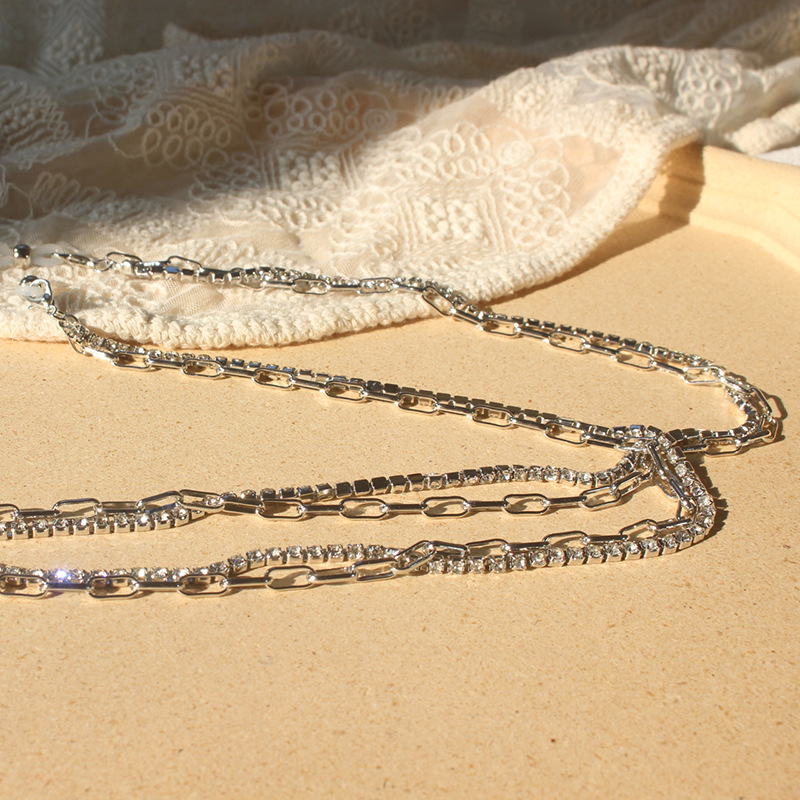 Chain kính dây đeo mắt kiếng 2 layer mix sợi đá blink blink sang chảnh phụ kiện Âu Mỹ