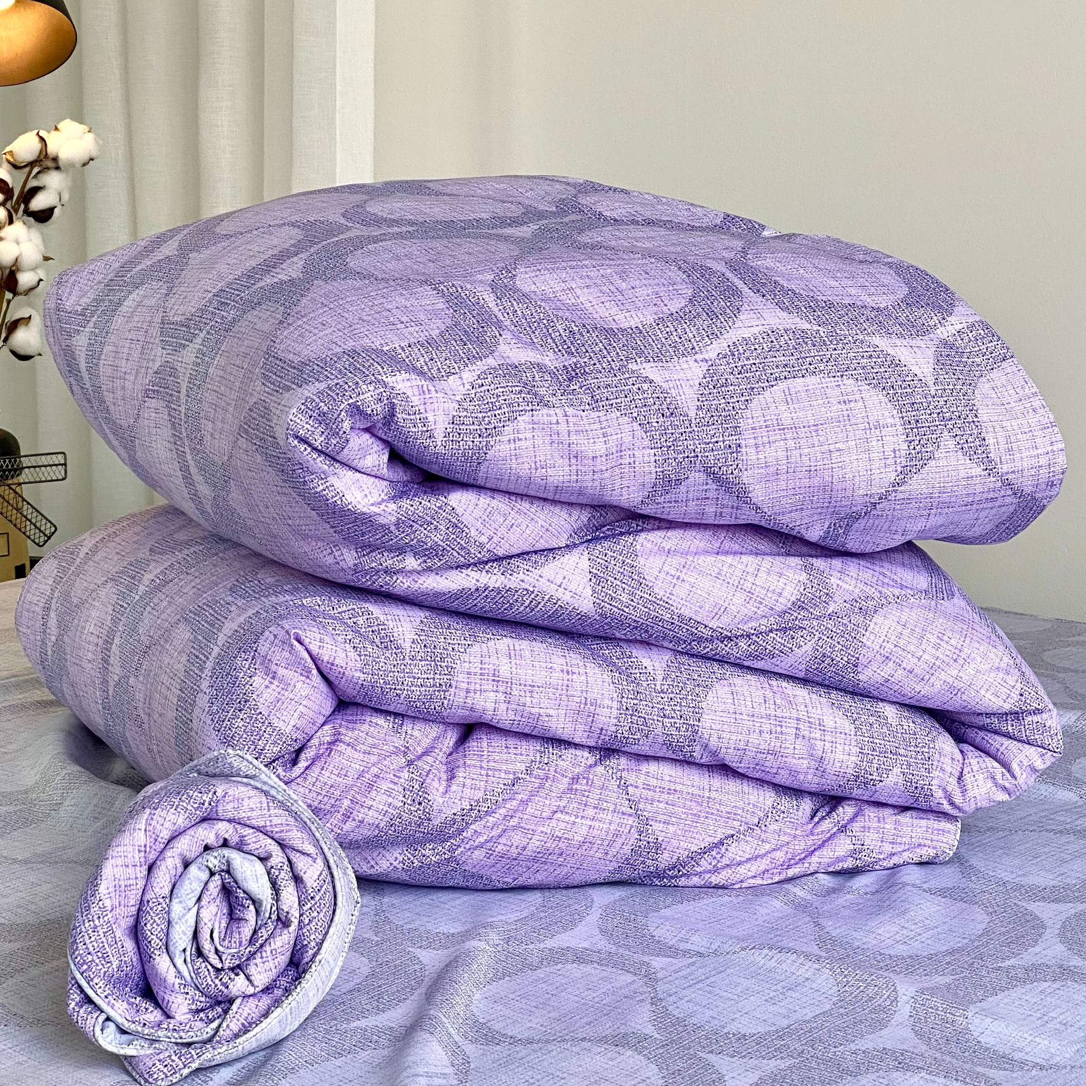 ✨Chăn bốn mùa Hàn Quốc K-Bedding by Everon MicroTencel Xám Phối Tím KMTP116 180*200cm