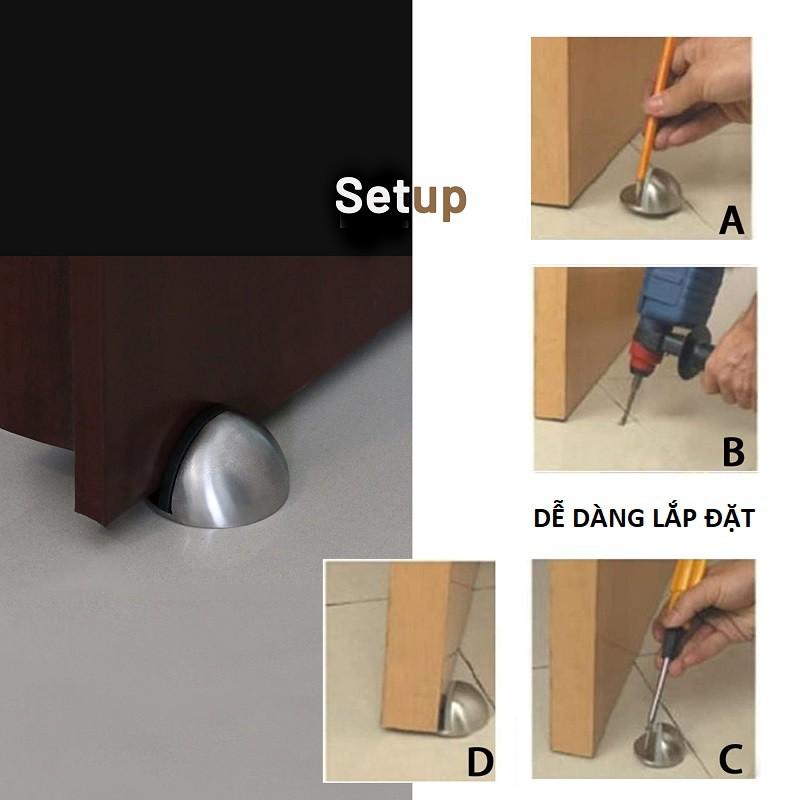 - Chặn cửa bán nguyệt loại không nam châm được lắp đặt ở dưới sàn nhà, ngăn không cho cửa va chạm mạnh vào tường, đảm bảo sự bền bỉ của tay nắm và cửa với tường.