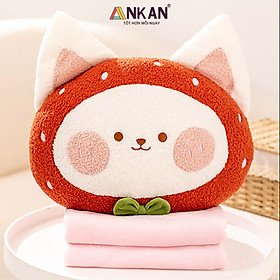 ✨Chăn Gối Văn Phòng Kiểu Mèo Dâu Tây Cao Cấp Có Chăn Đi Kèm Dùng Làm Quà Tặng Cho Bạn Bè Người Thân Có Thể Tựa Đầu, Tựa Lưng Và Ngủ Tại Văn Phòng