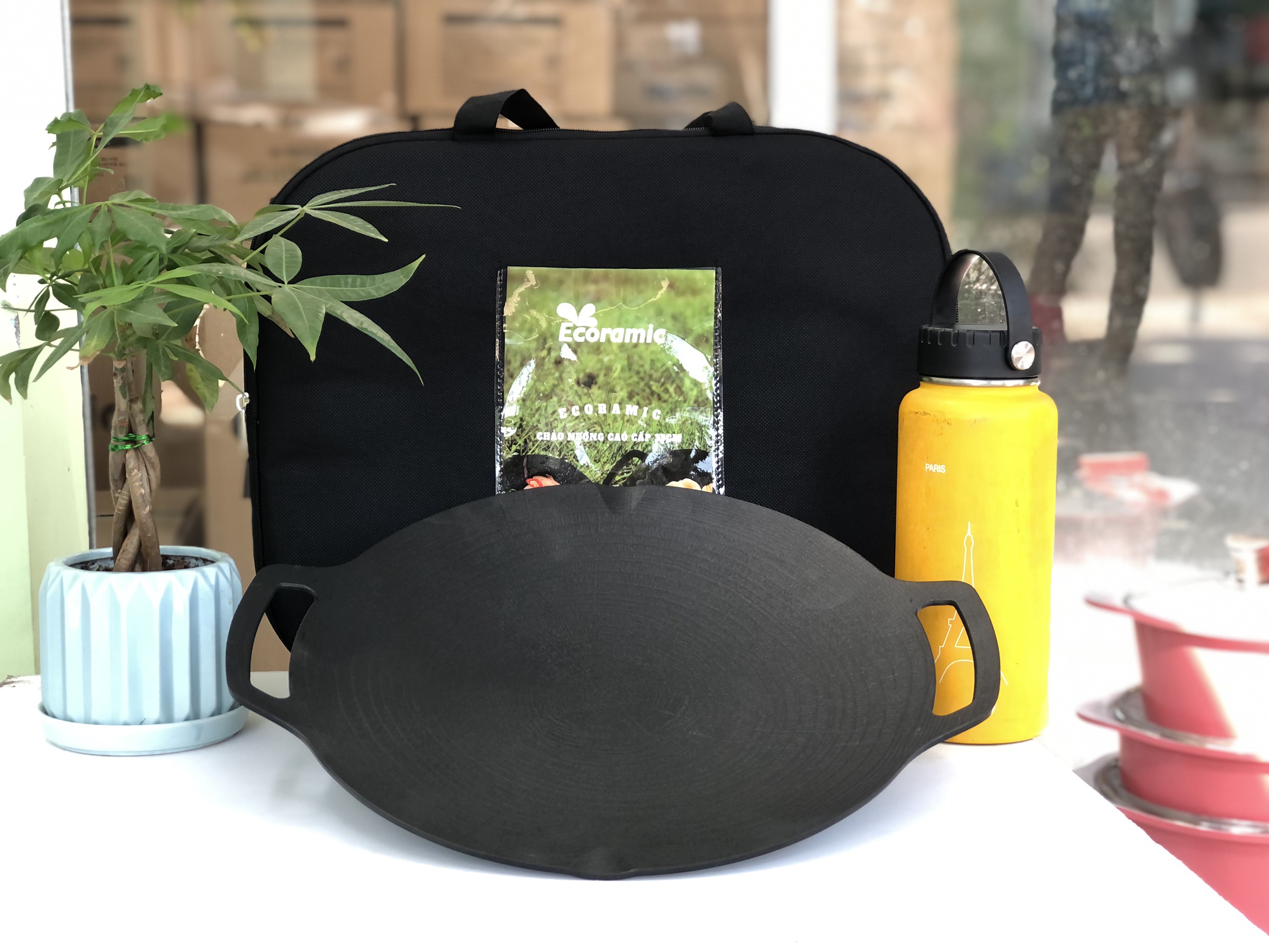 Đi kèm túi đựng chảo nhỏ gọn, siêu tiện lợi, chất liệu vải nhẹ thoáng, giặt khô nhanh chóng
