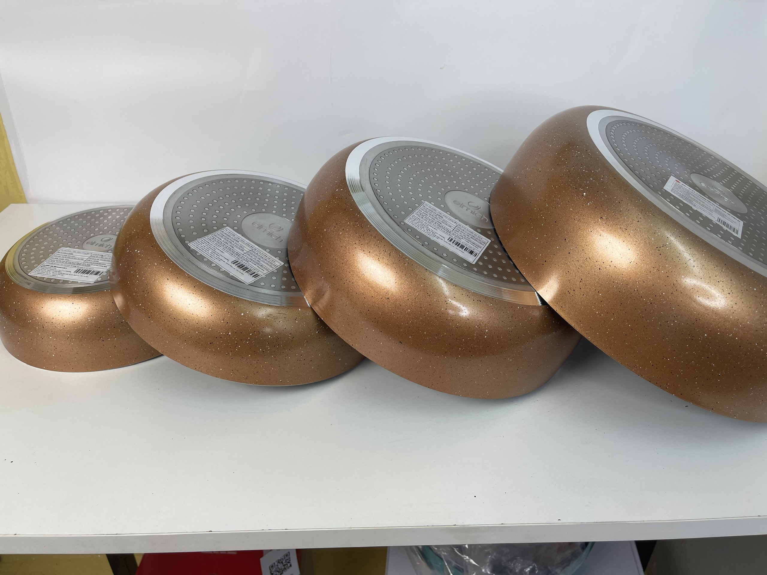 Chảo nhôm lòng sâu chống dính đáy từ Elmich EL2020/ EL2024/ EL2026/ EL2028/ EL2030MN - Hàng chính hãngMÔ TẢ SẢN PHẨM- Chảo nhôm lòng sâu chống dính đáy từ Elmich EL2020MN được làm từ chất liệu nhôm nguyên chất với thân, miệng, đáy dày 2,8mm, đáp ứng tốt mọi nhu cầu chế biến thực phẩm. Bên trong lòng chảo với công nghệ tạo đá sần tự nhiên, tăng khả năng chống dính lên gấp 2 lần và hạn chế dầu mỡ- Chảo được phủ một lớp chông dính trên bề mặt là Whitford Xylan tuyệt đối an toàn cho sức khỏe, không giải phóng chất PFOA gây ung thư. Đồng thời bên ngoài phủ chất chống dính Whitford Xylan màu vàng đồng sang trọng và thanh lịch- Chảo có phần cán chảo Bakelit, được ốp nhựa cách nhiệt, tránh tình trạng bỏng cho người dùng, thoải mái đảo nấu thực phẩm. Lòng chảo sâu tối đa, đáy rộng phù hợp với nhiều công dụng nấu nướng khác nhau