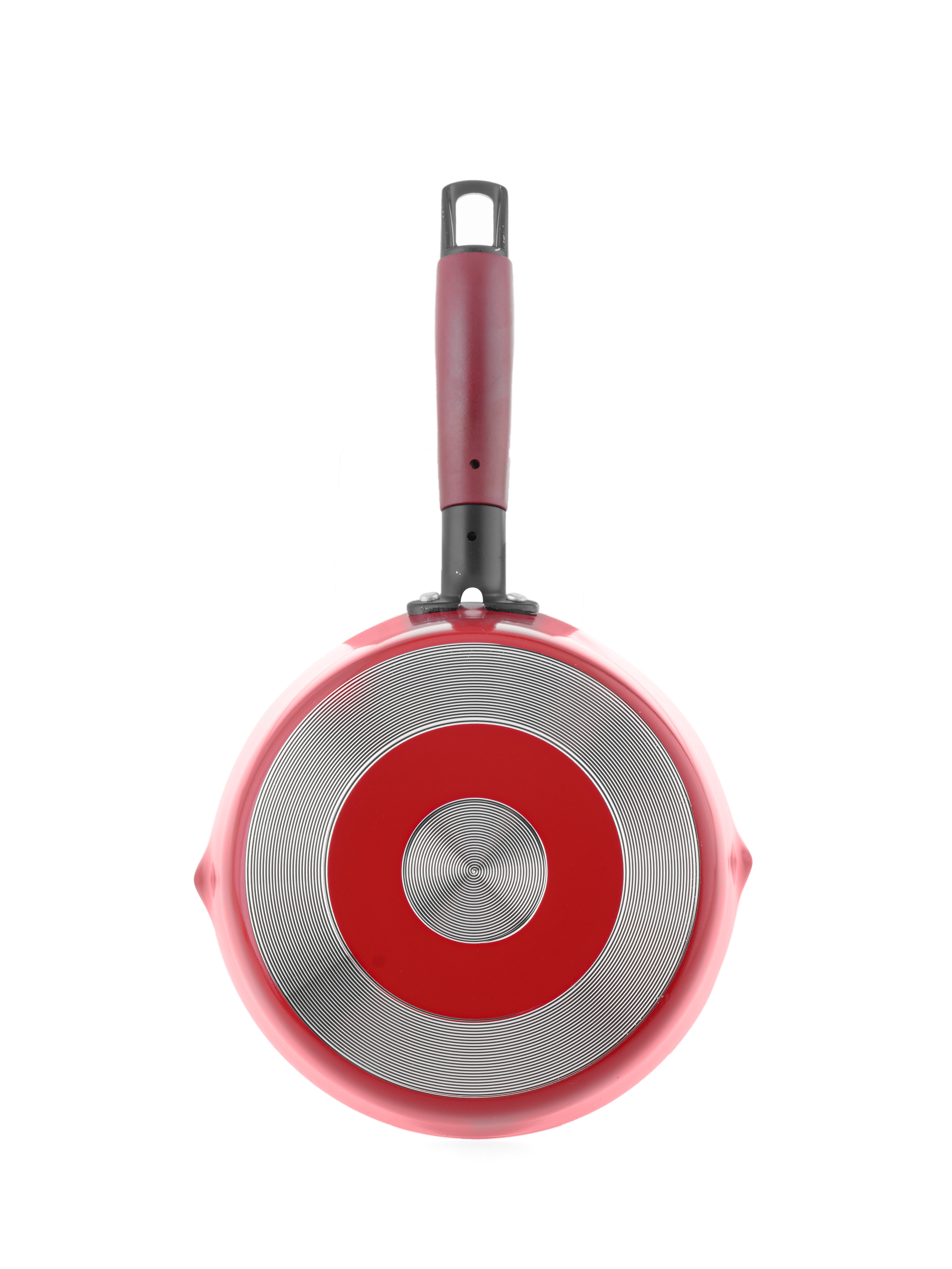Chiếc chảo thanh lịch này từ Bộ sưu tập Burgundy của chúng tôi được làm bằng nhôm rèn với lớp phủ đá cẩm thạch chống dính. Đáy cảm ứng, được tạo ra với sự hỗ