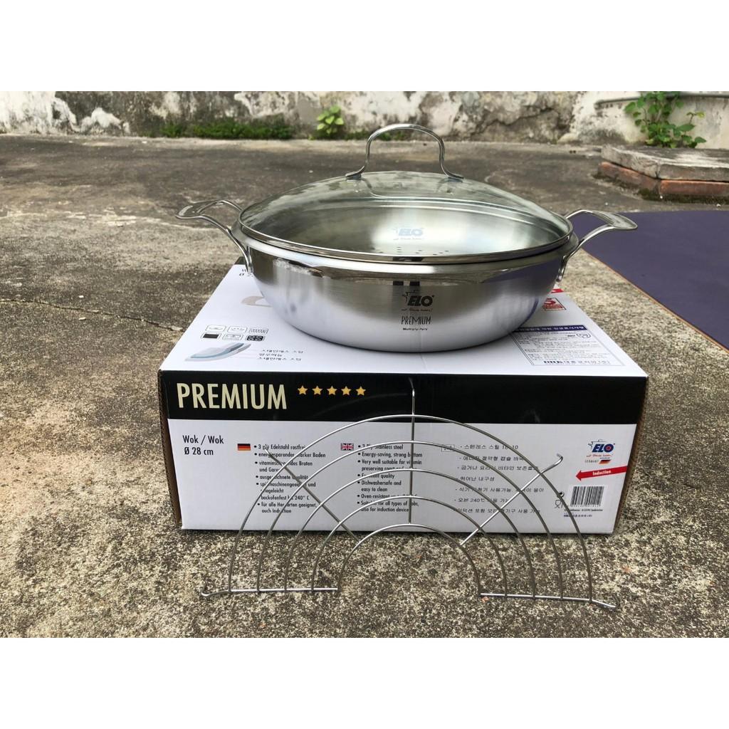 Chảo lẩu Inox 304 đáy liền Elo Premium Multiwok 28cm tặng Vỉ hấp, vỉ chiên chuẩn Đức Zalo 0986588655
