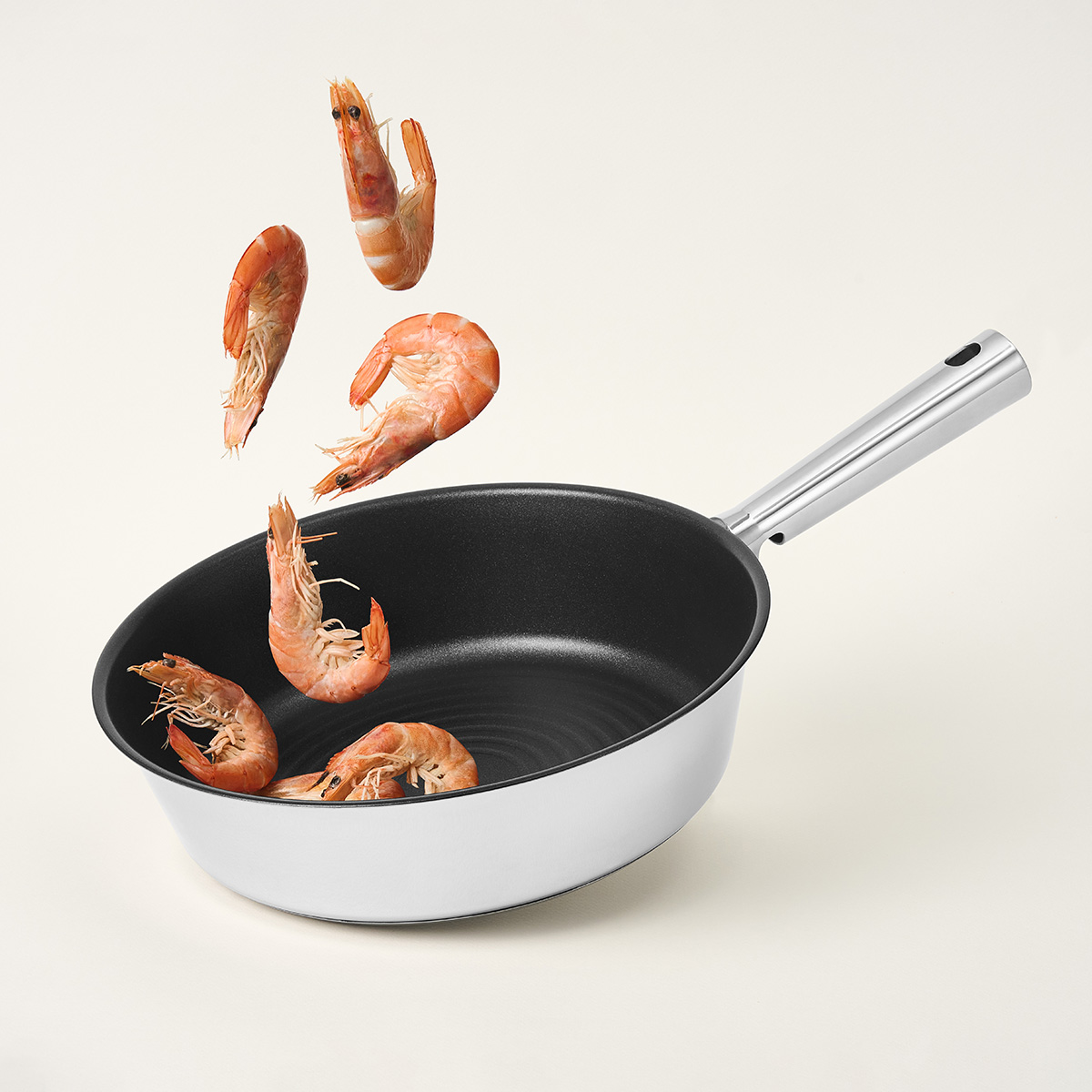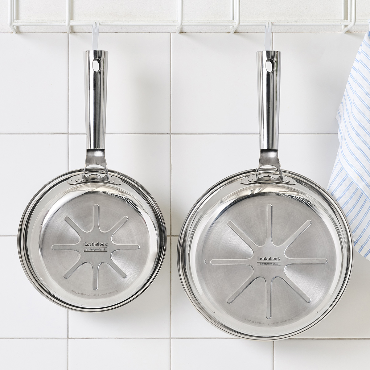 Chảo chiên và chảo sâu lòng Suit STS được thiết kế đẹp mắt với mặt ngoài inox sang trọng, hạn chế trầy xước và chống bám bẩn. Chảo có thể sử dụng cho việc chiên xào đa dạng các món ăn khác nhau.