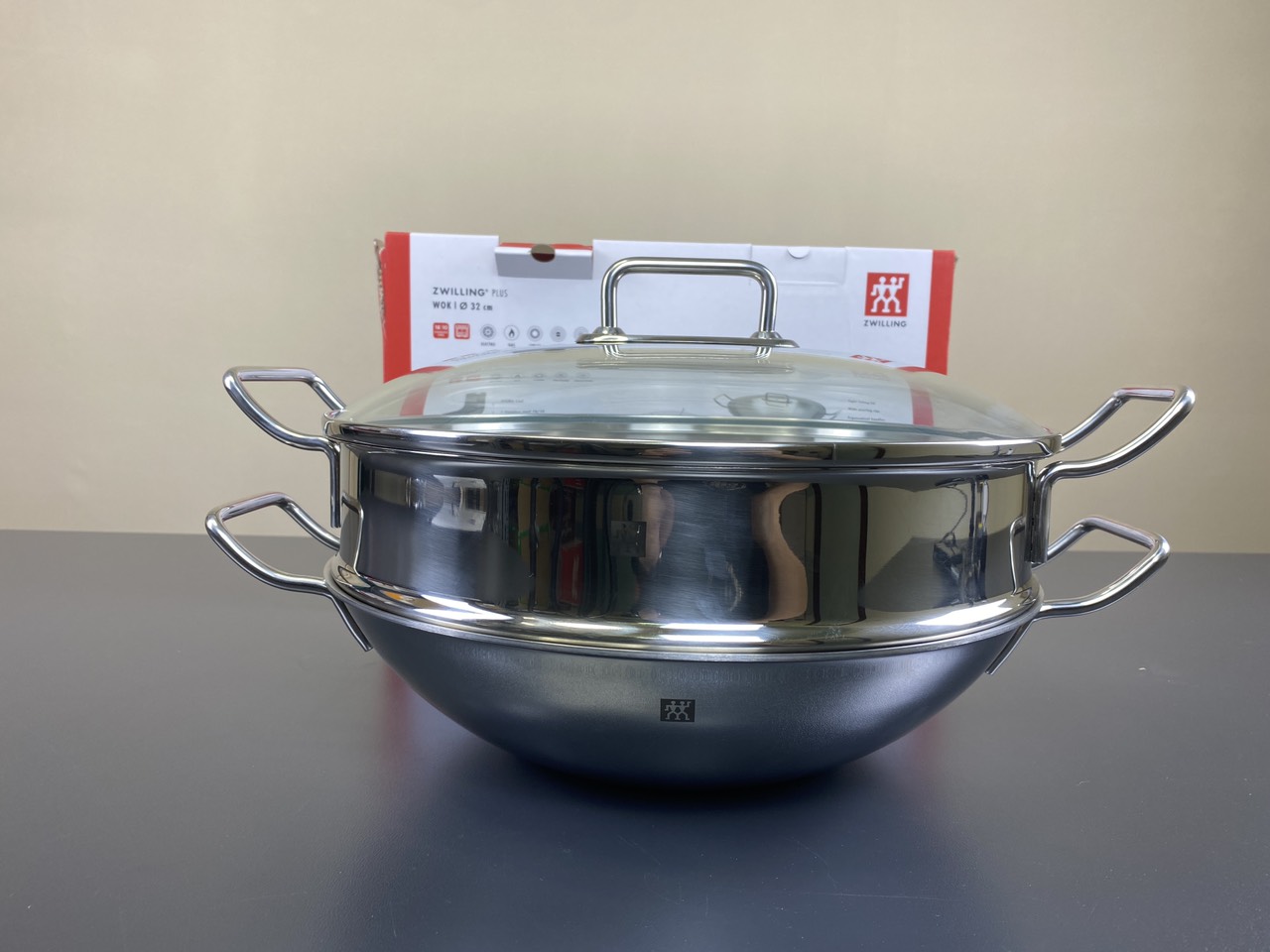 CHẢO TỪ ZWILLING PLUS WOK 32CM có những đặc điểm sau: Chảo từ Zwilling Plus Wok 3 đáy Đường kính: 32cm/ 12,6 inch 1 xửng hấp 32 cm kèm Đường kính đáy: 14cm/ 5,5 inch