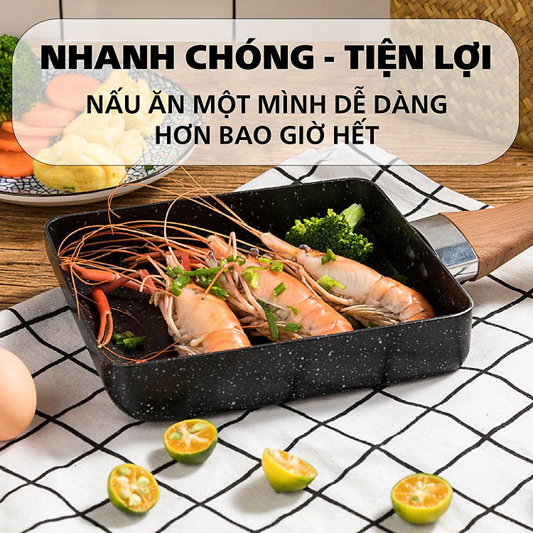 ️ Chảo đúc hợp kim nhôm nguyên khối công nghệ Hàn Quốc, bền chắc gấp 3 lần với chảo inox thông thường, chịu lực tốt, chống biến dạng.