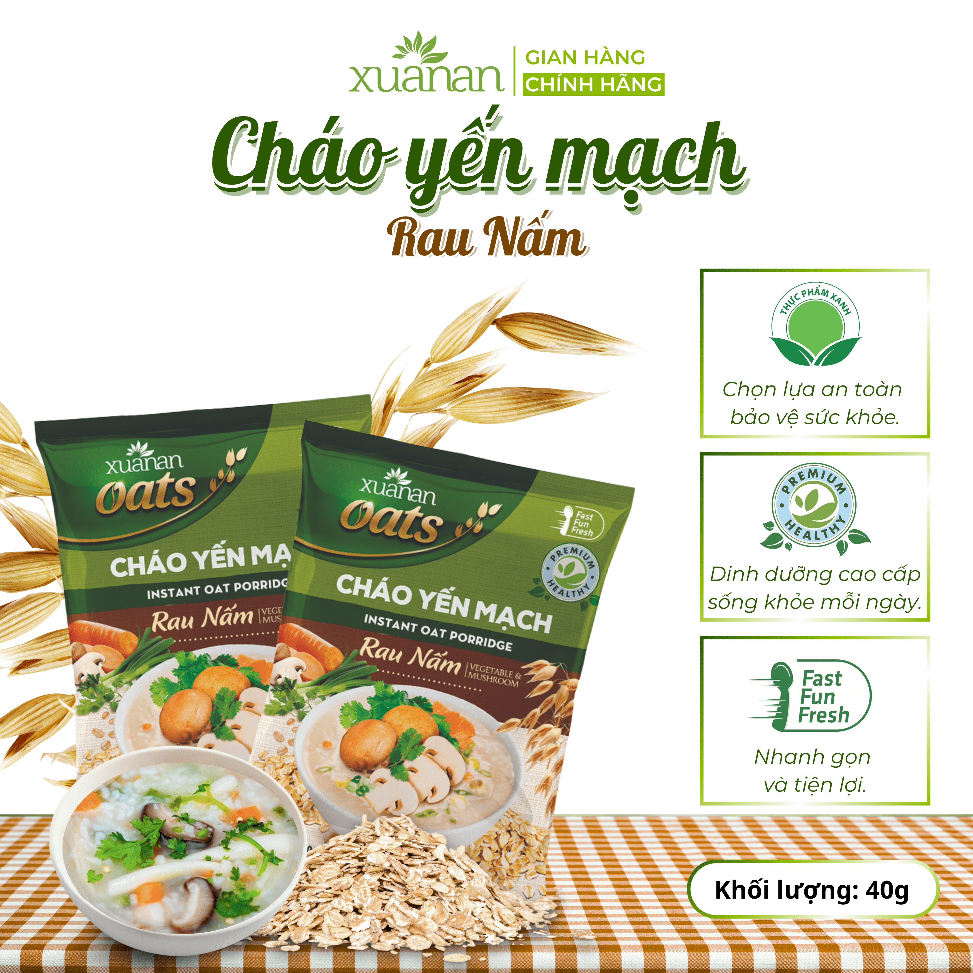 CHÁO YẾN MẠCH RAU NẤM (CHAY) – GÓI 40GR