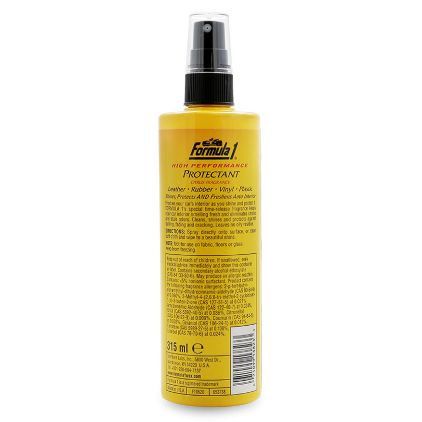 - Chất bảo dưỡng 2 trong 1 hương cam FORMULA1 613823 315ml chính là sự kết tinh của những công nghệ cao được nghiên cứu bởi các chuyên gia hàng đầu của Mỹ. Thành phần hoạt chất thông minh tạo nên công thức 2 trong 1 hoàn hảo. Chỉ với một sản phẩm bề mặt bên trong xe bạn không chỉ được bảo vệ hiệu quả mà còn chăm dưỡng tối ưu nhất.