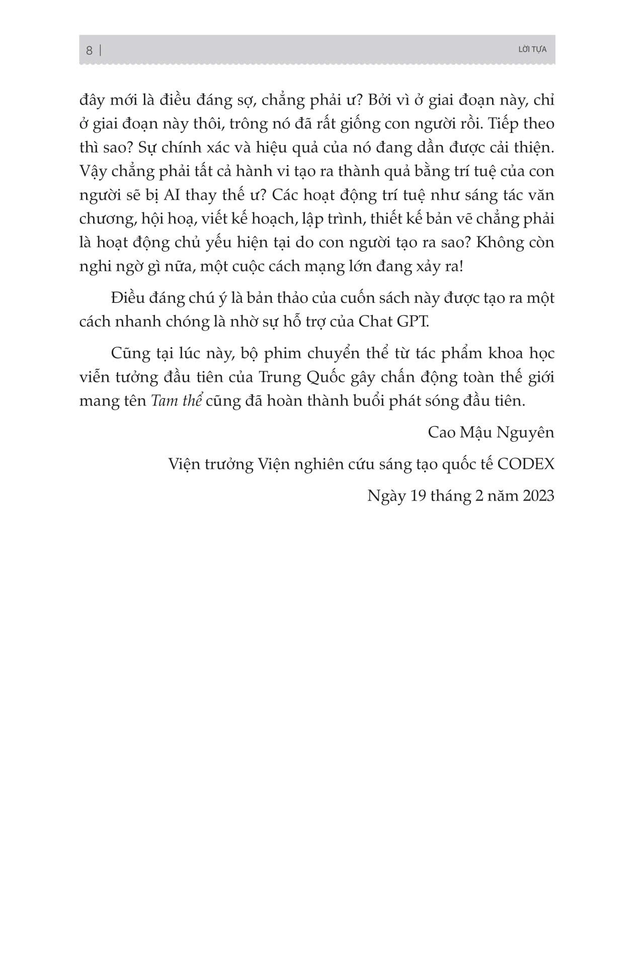 Hy vọng rằng, “Chat GPT - Trào lưu hay tương lai nhân loại” mang đến cho bạn những góc nhìn mới về công nghệ trí tuệ nhân tạo, truyền cảm hứng cho bạn, để tất cả cùng cống hiến hết mình và có những đóng góp lớn hơn cho sự nghiệp nghiên cứu, phát triển và ứng dụng công nghệ trí tuệ nhân tạo.